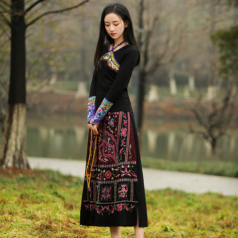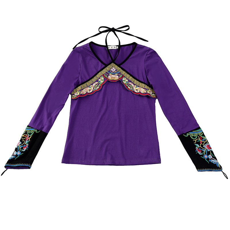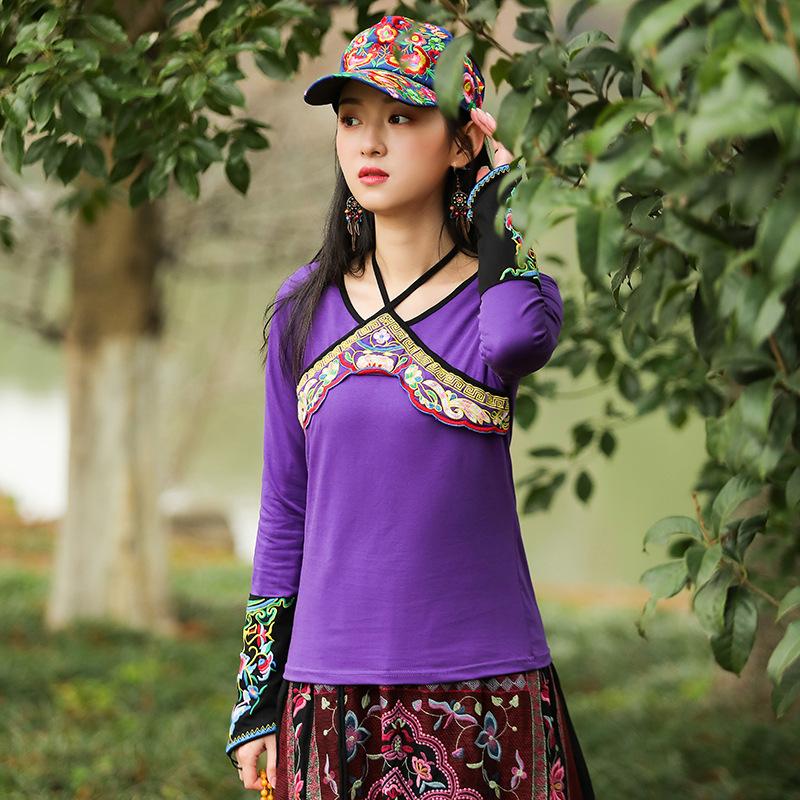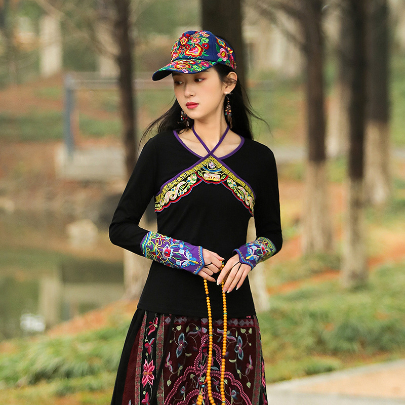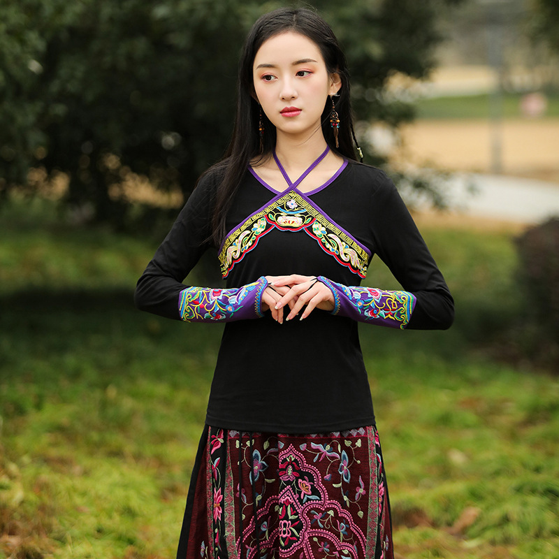 | nameOriginal | Real shot New embroidery stitching embroidered versatile ethnic style T-shirt bottoming shirt slim color matching long sleeve top |