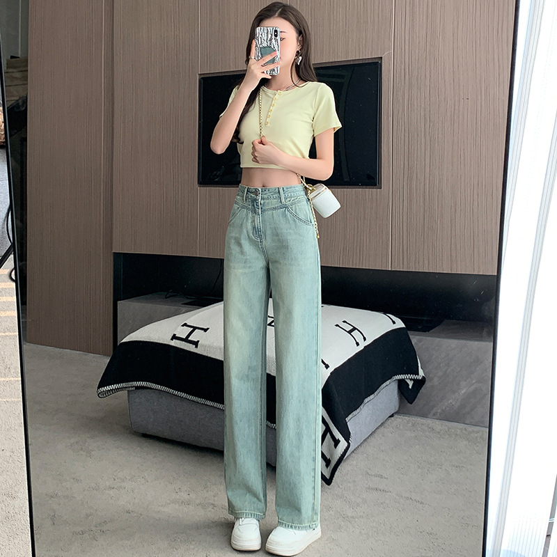| nameOriginal | Real shot new jeans women's 2024 small high waist slimming straight wide leg mopping pants |
