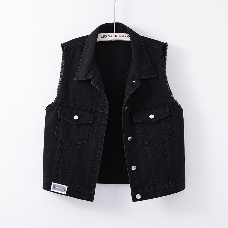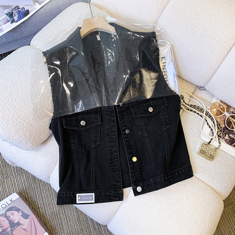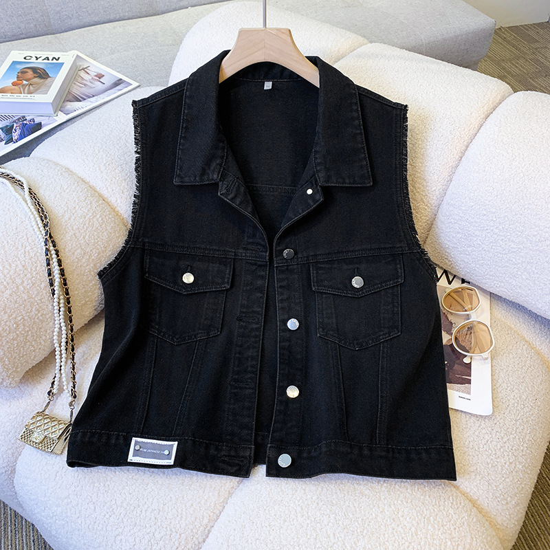 Real shot New plus size Denim coat women's loose all-match Denim vest fashion niche design vest waistcoat fashion