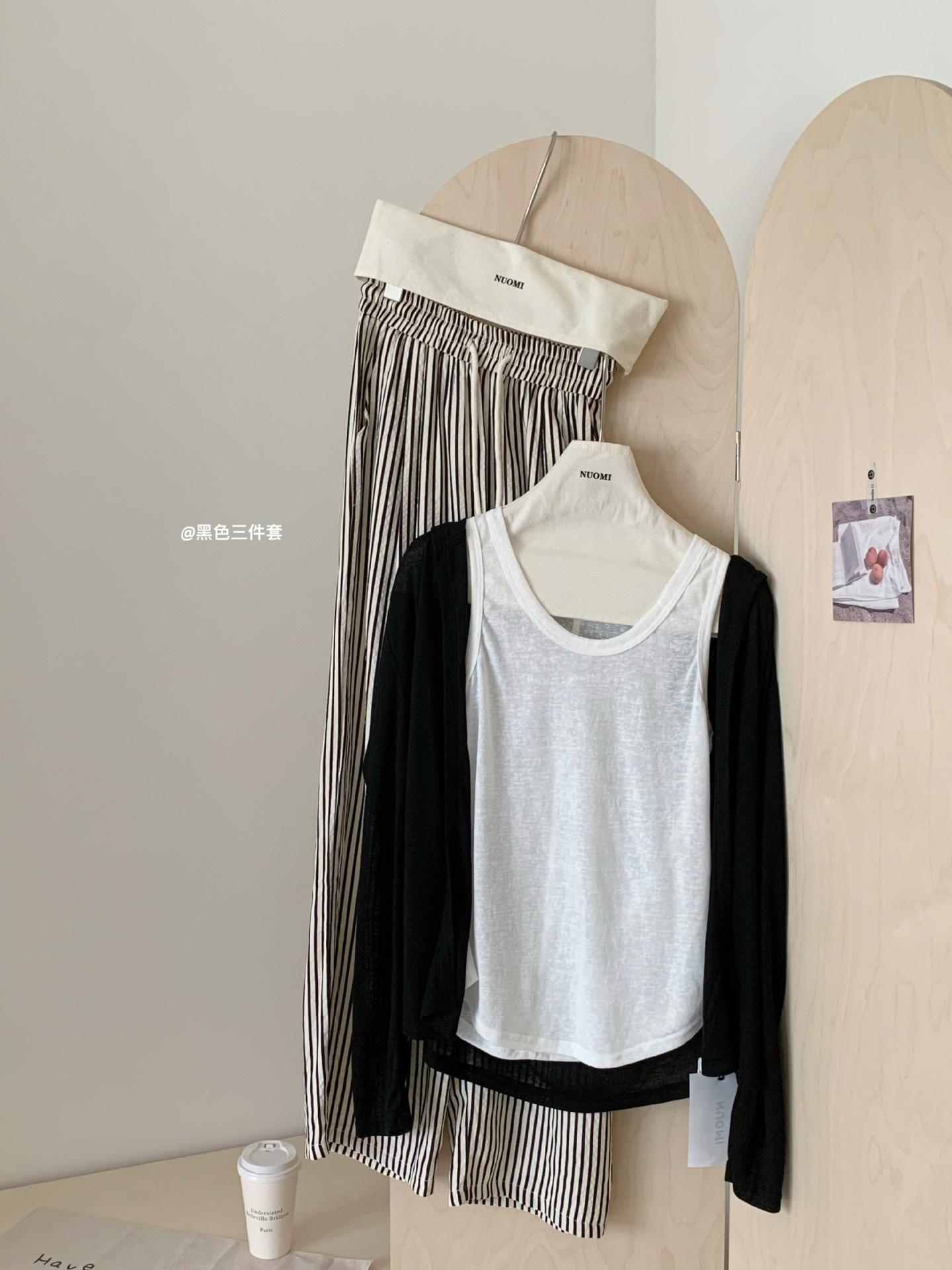 | nameOriginal | Real Shot Paper People Sunscreen Cardigan Retro Vertical Stripe Casual Pants Slimming All-match Camisole Three-piece Suit |