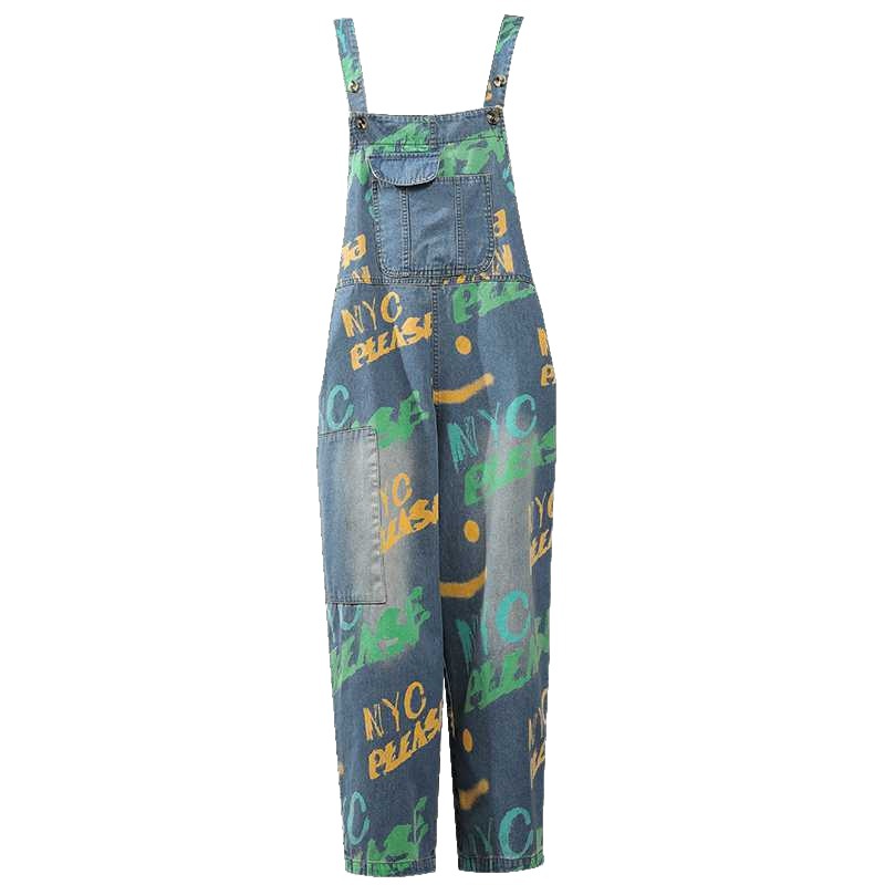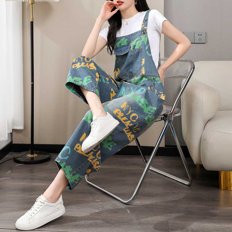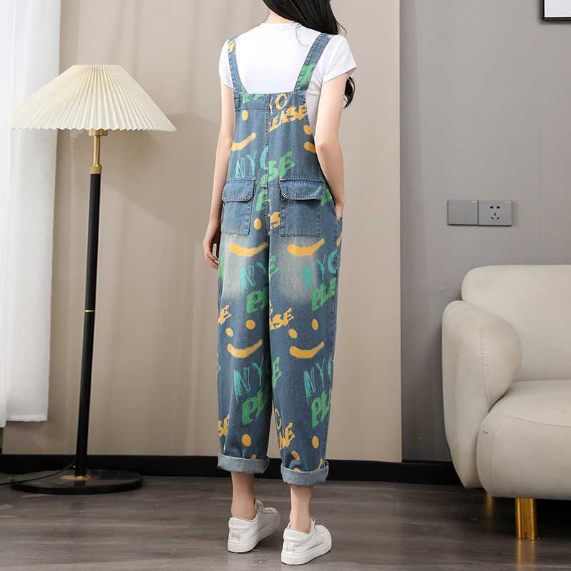 Real Shot plus size Denim Belt Pants 2024 New Loose Casual Fashion All-match Printed Artistic Belt Pants