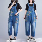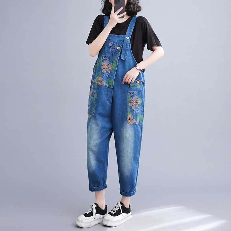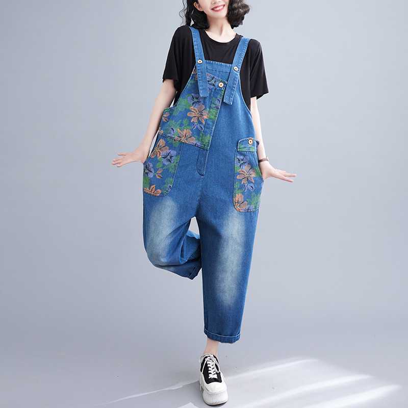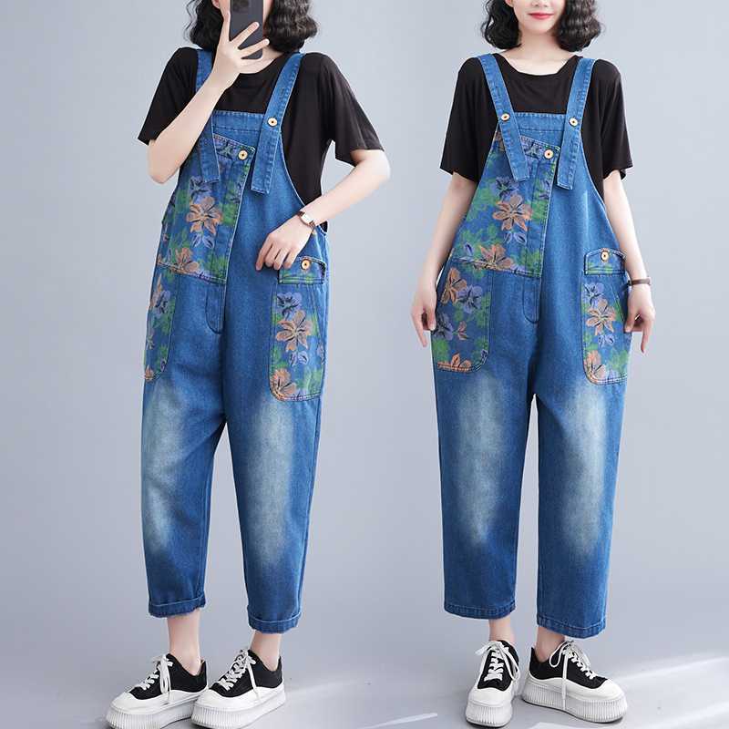 Real Shot plus size Denim Belt Pants 2024 New Loose Casual Fashion All-match Printed Artistic Belt Pants