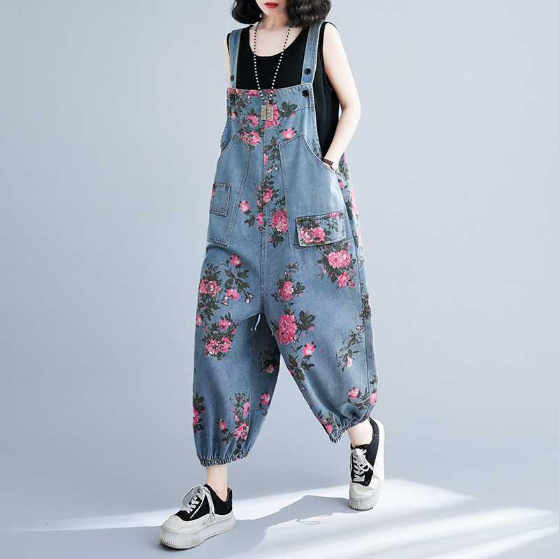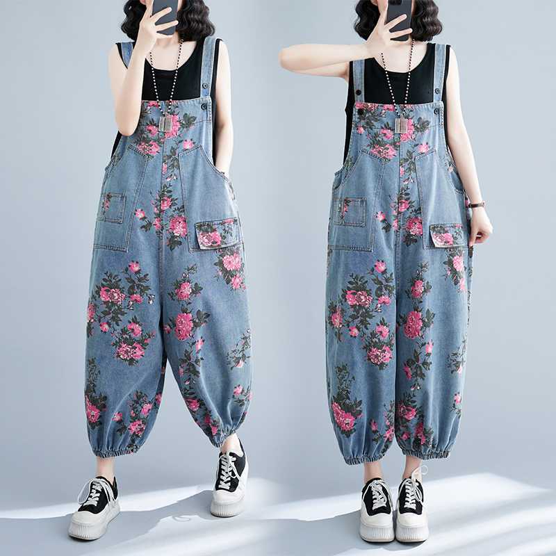 | nameOriginal | Real Shot plus size Denim Belt Pants 2024 New Loose Casual Fashion All-match Printed Artistic Belt Pants |