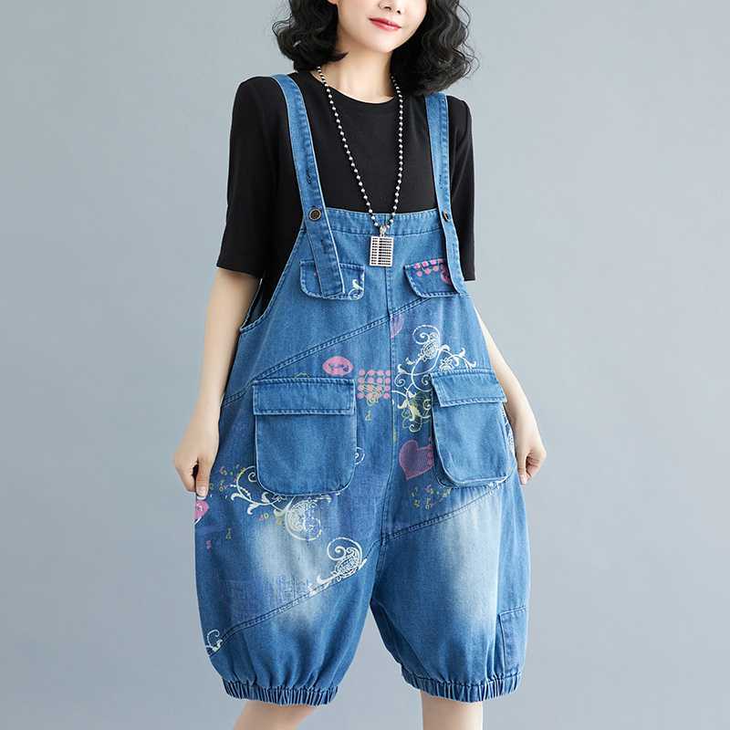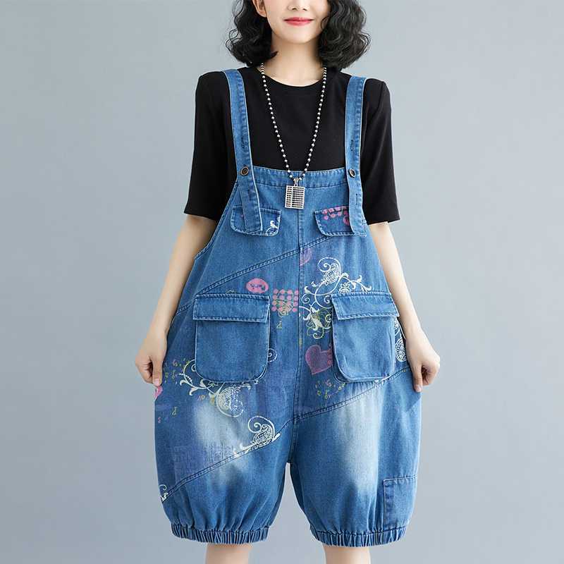 | nameOriginal | Real shot plus size Denim suspenders for 2024 summer Denim printed loose casual all-match suspenders for women |