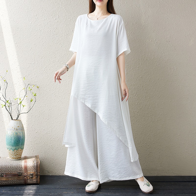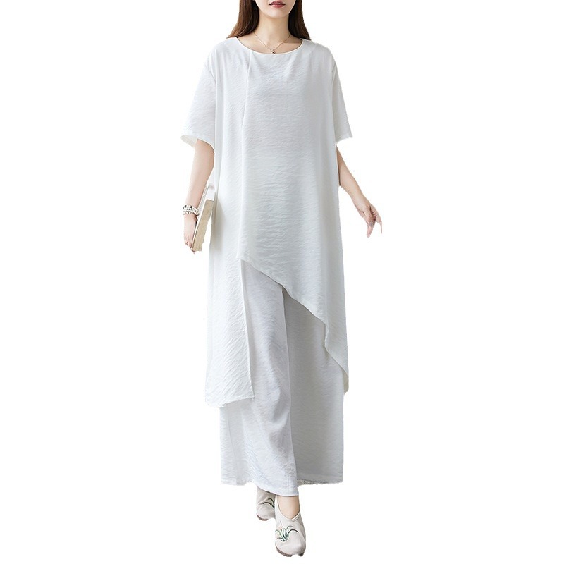| nameOriginal | Real shot plus size personality irregular cotton and linen suit women's long thin white shirt all-match wide leg pants spring and summer |