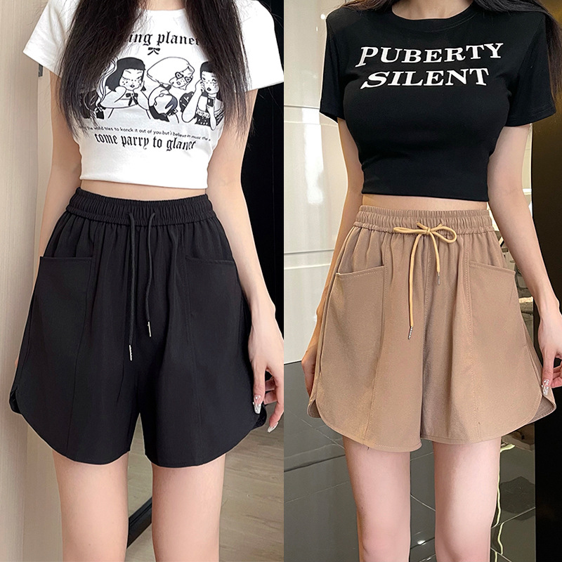 Real Shot plus size Women’s 2024 Summer New High Waist Slim Sports Shorts Loose All-match Wide Leg Shorts