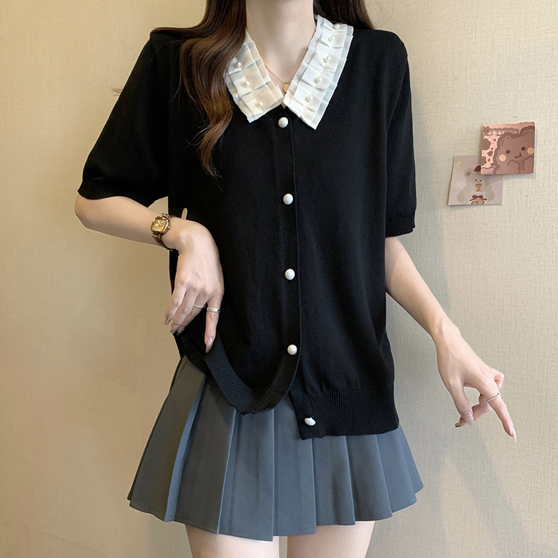 | nameOriginal | Real shot plus size women's 2024 summer new Korean ice silk short sleeve chubby girl foreign style beaded neckline knitted cardigan |