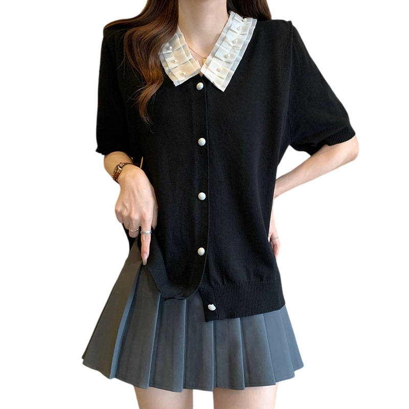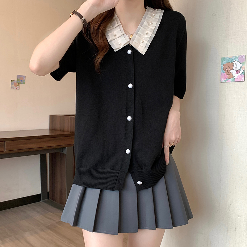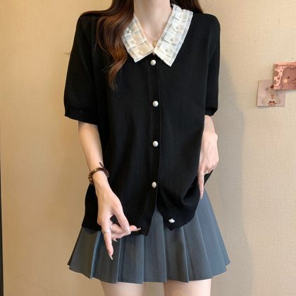 | nameOriginal | Real shot plus size women's 2024 summer new Korean ice silk short sleeve chubby girl foreign style beaded neckline knitted cardigan |