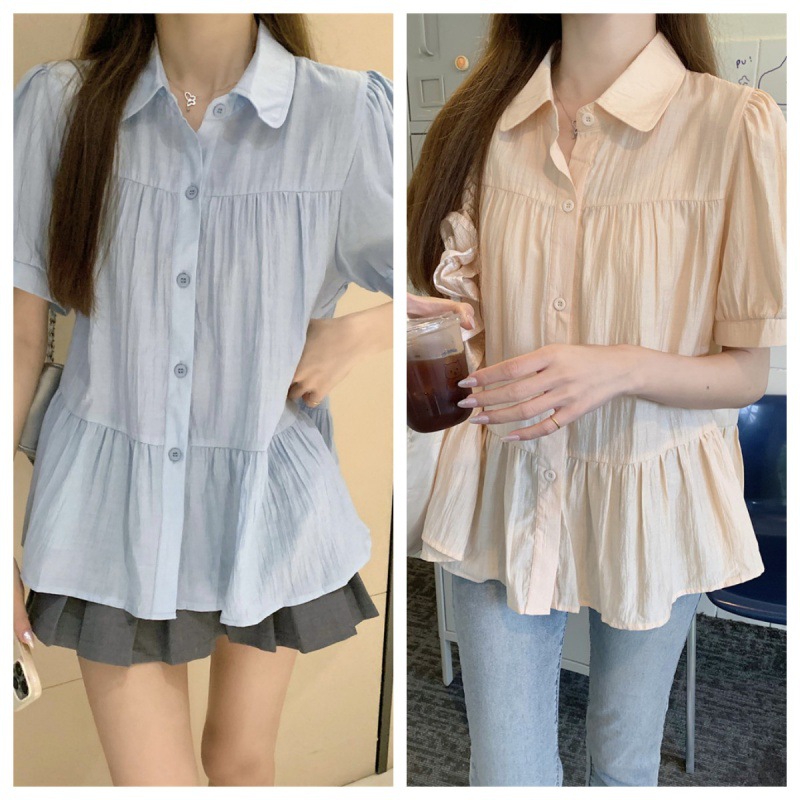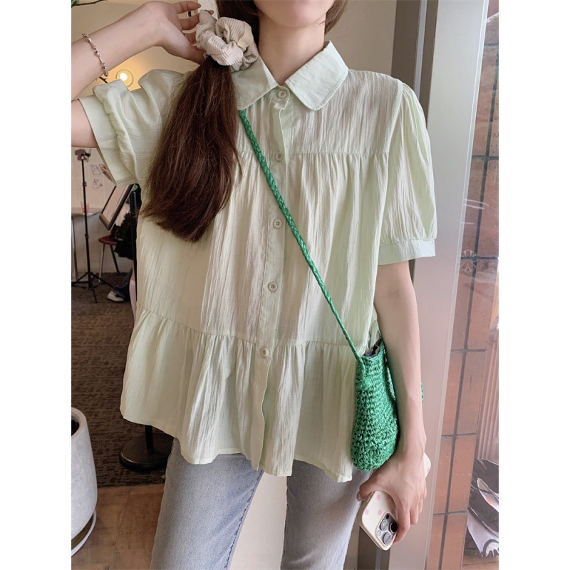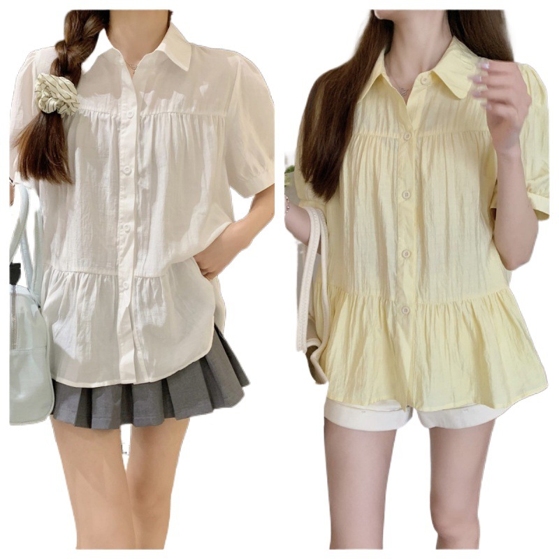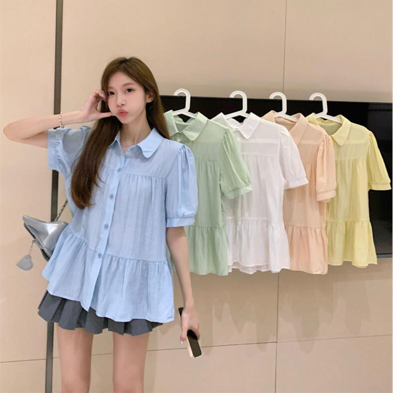 | nameOriginal | Real shot polo collar plus size short sleeve doll shirt women's 2024 summer loose bubble sleeve belly waist shirt top |