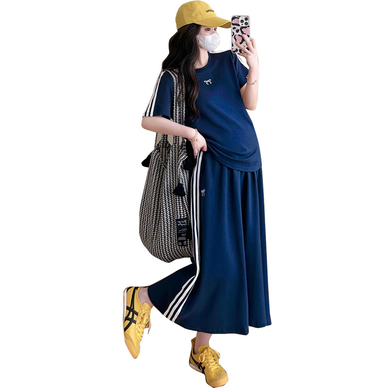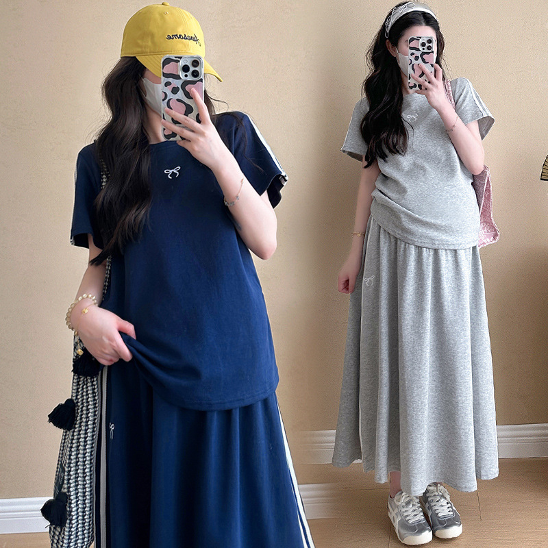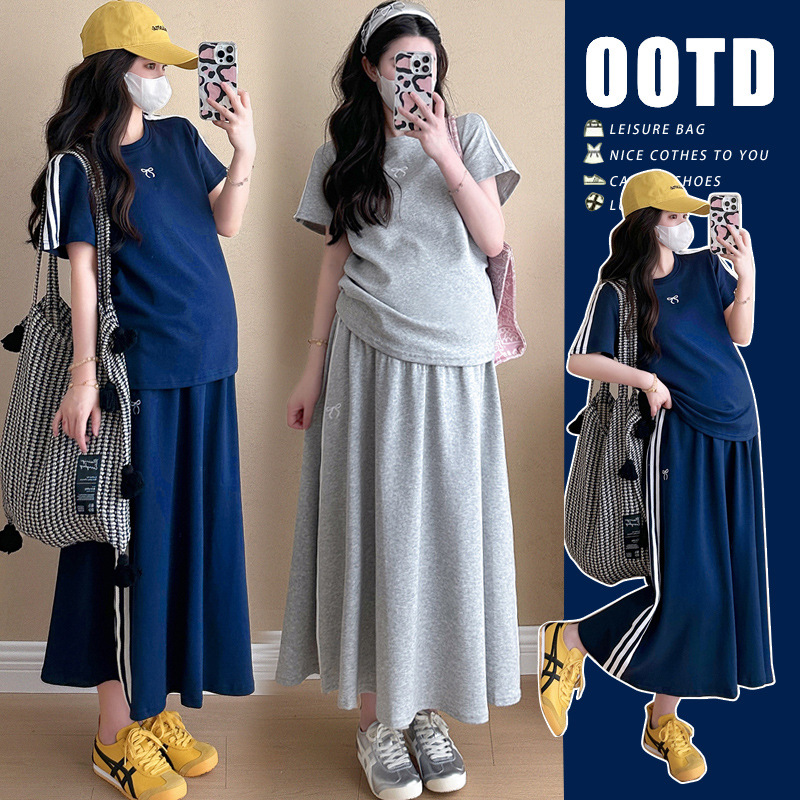 | nameOriginal | Real shot pregnant women suit summer new fashion mom loose sports style short sleeve T-shirt drag belly skirt two-piece set |