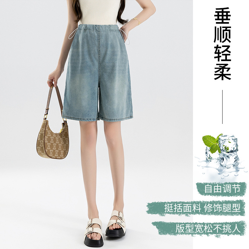 | nameOriginal | Real Shot Pregnant Women's Side Drawstring Elastic Lyocell Tencel Denim Shorts Casual Simple Summer Outer Wear |