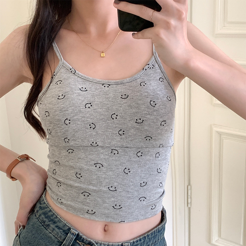 | nameOriginal | Real Shot Pure Desire Spice Girl Smiley Camisole Women's 2024 Spring and Summer Inner Wear Outer Wear Slim-fit Short with Chest Pad |