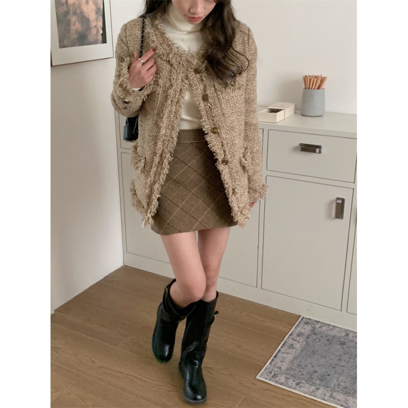 | nameOriginal | Real shot real price Korean style Chanel style cotton-padded coat + plaid high waist skirt suit detachable |