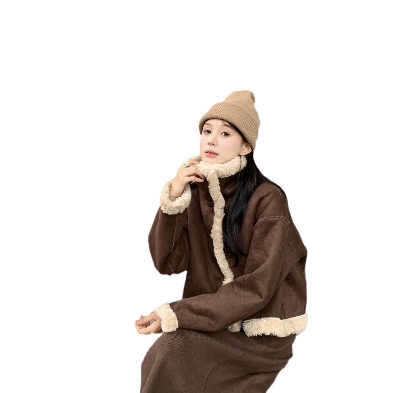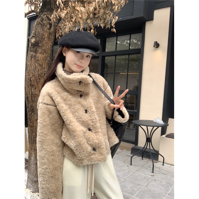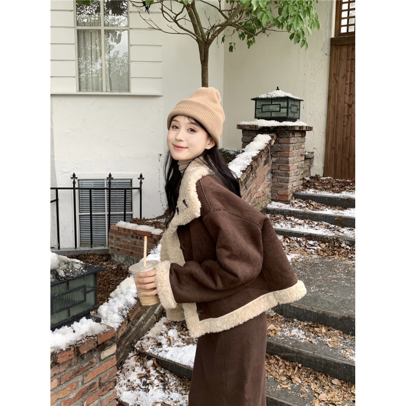 | nameOriginal | Real shot real price new Maillard brown two-sided wear fur one lamb fur short motorcycle jacket |
