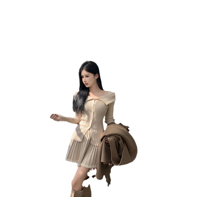 | nameOriginal | Real shot real price pure desire elegant fashion women's long-sleeved knitted cardigan high waist skirt two-piece set |