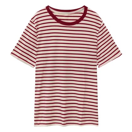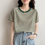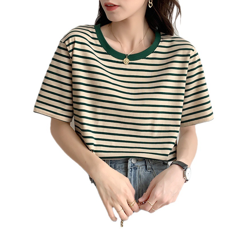 | nameOriginal | Real shot real price retro striped short sleeve t-shirt women's summer 2023 new contrast color stitching all-match round neck top |