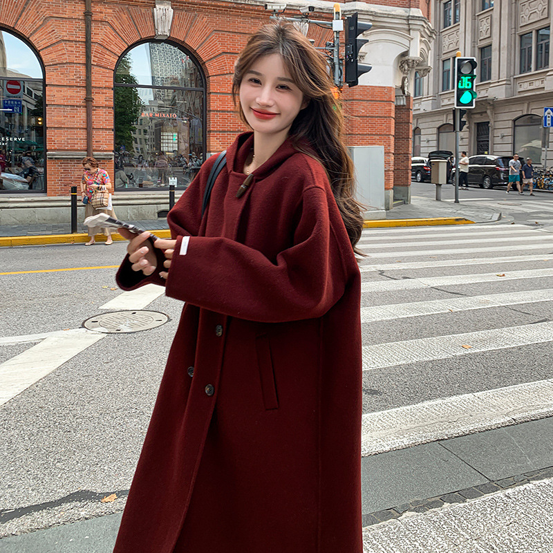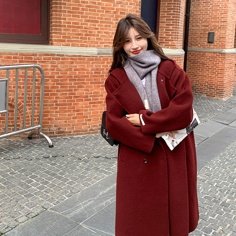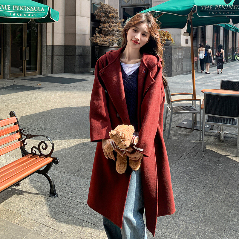 | nameOriginal | Real shot red double-sided cashmere coat for women autumn and winter 2024 new mid-length wool woolen cloak thick coat |