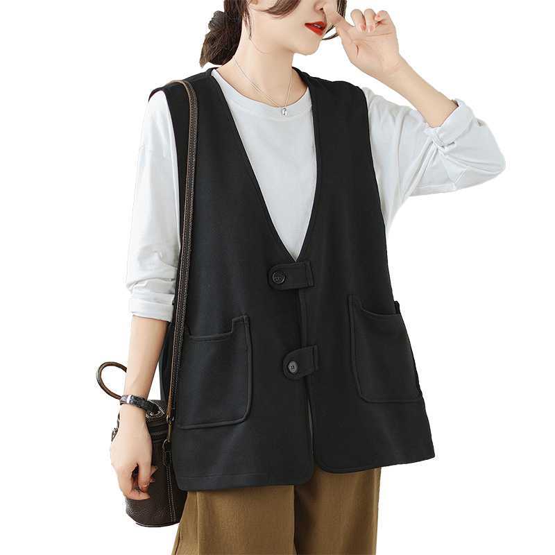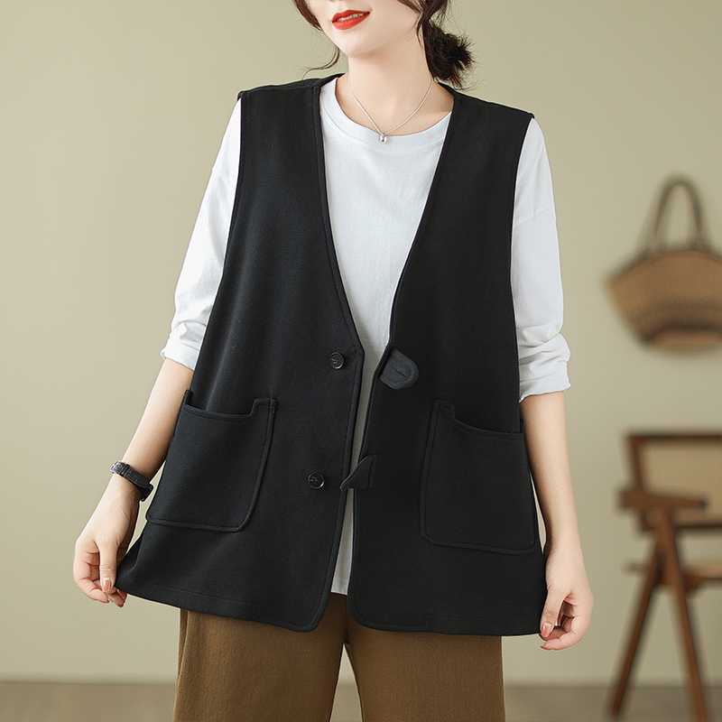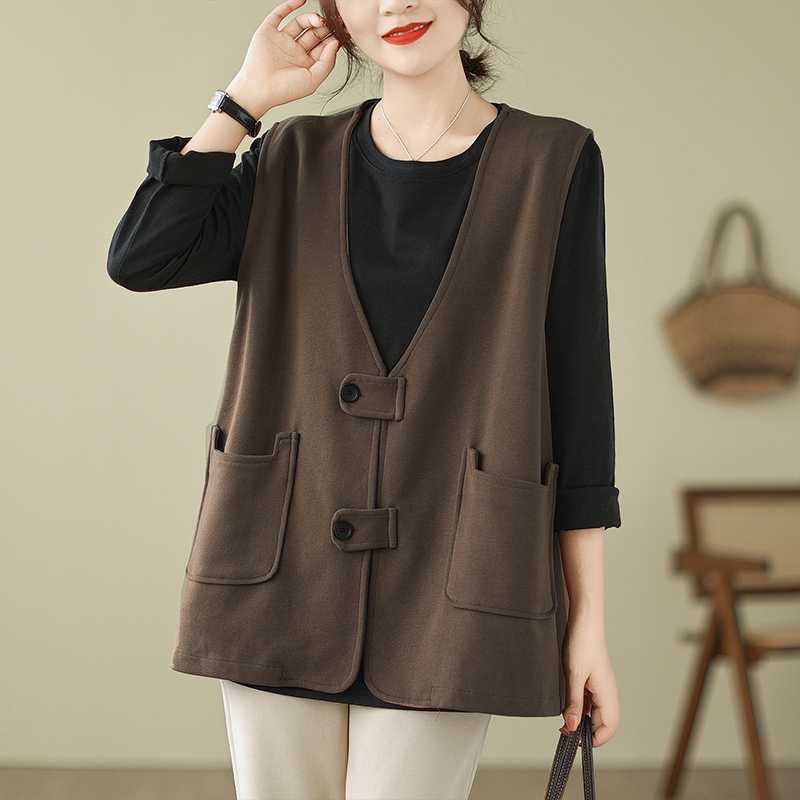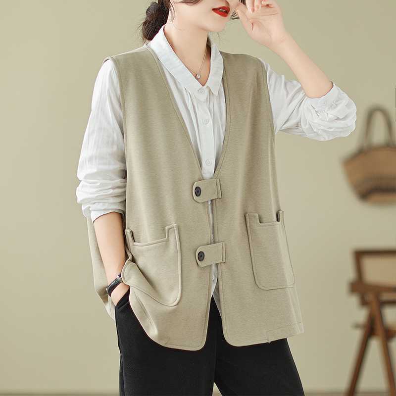 | nameOriginal | Real shot retro cotton vest coat spring new solid color V-neck design fashionable sleeveless waistcoat for women |