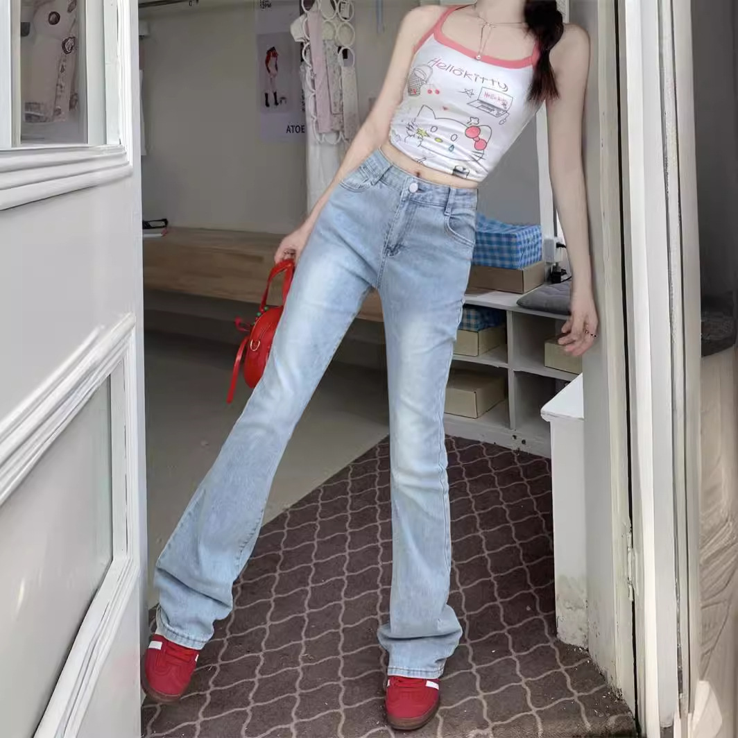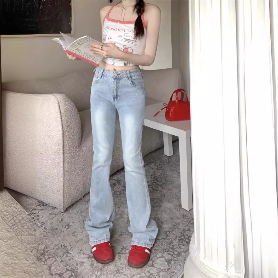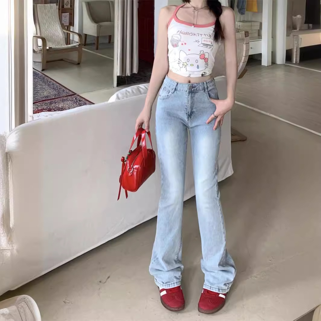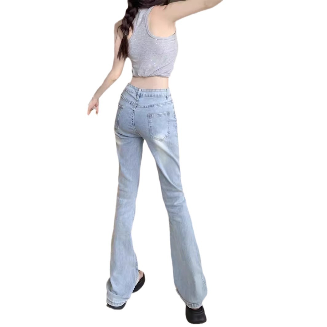 Real shot retro hot girl light color jeans women’s new low waist close-fitting slimming wide leg pants mopping trousers