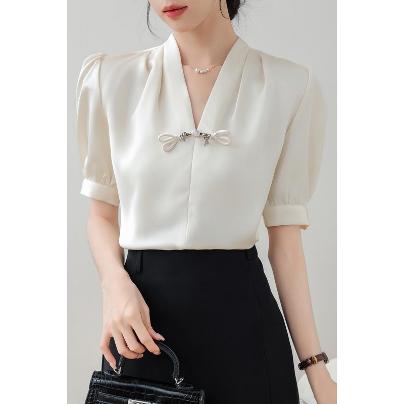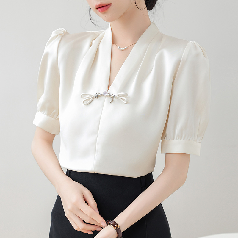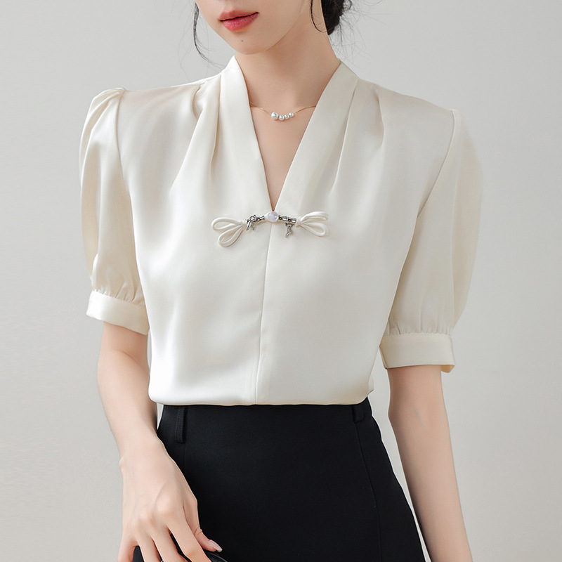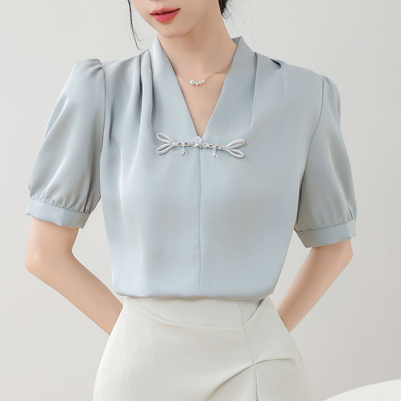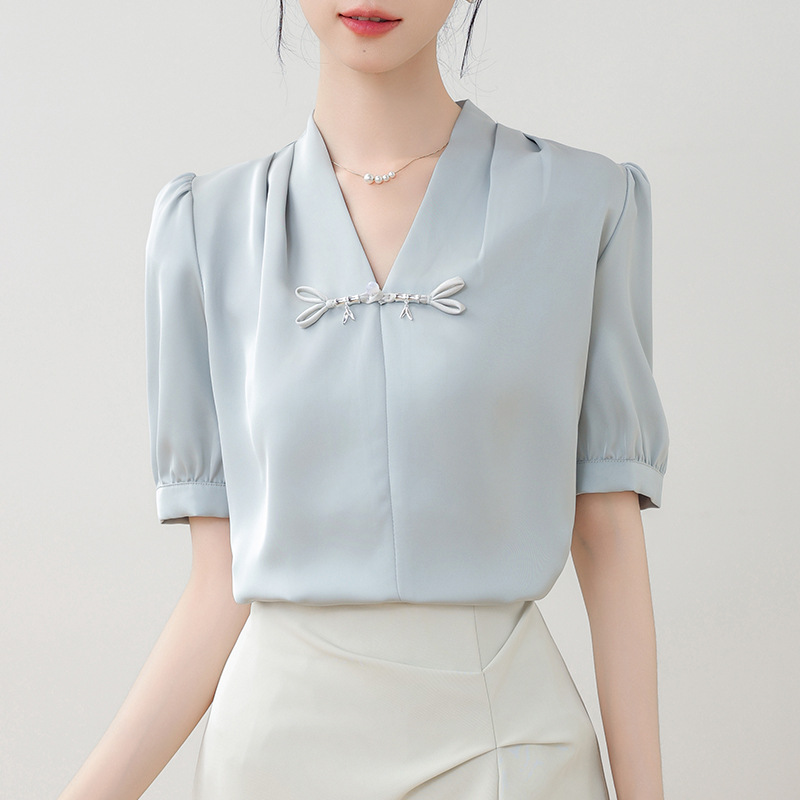 | nameOriginal | Real shot retro new Chinese style V-neck button short sleeve shirt women's summer new light national style satin small shirt top |