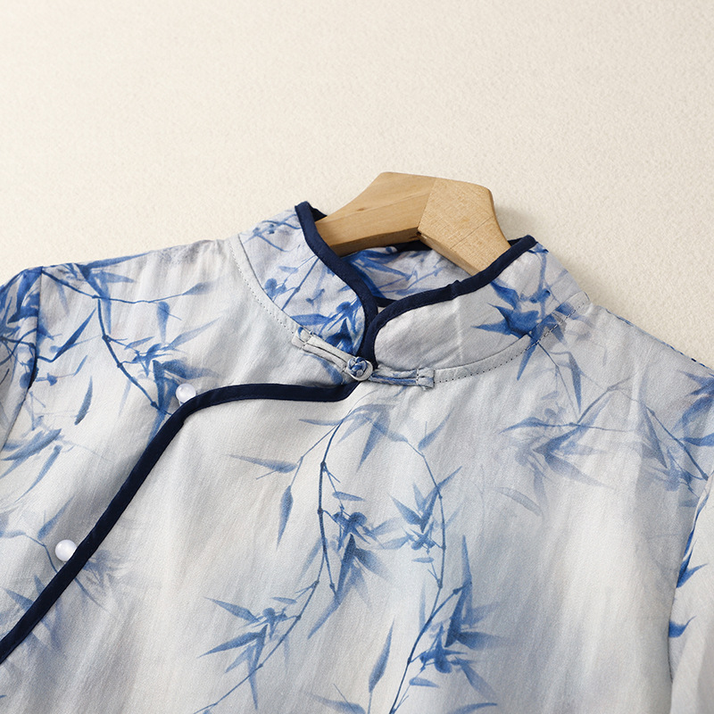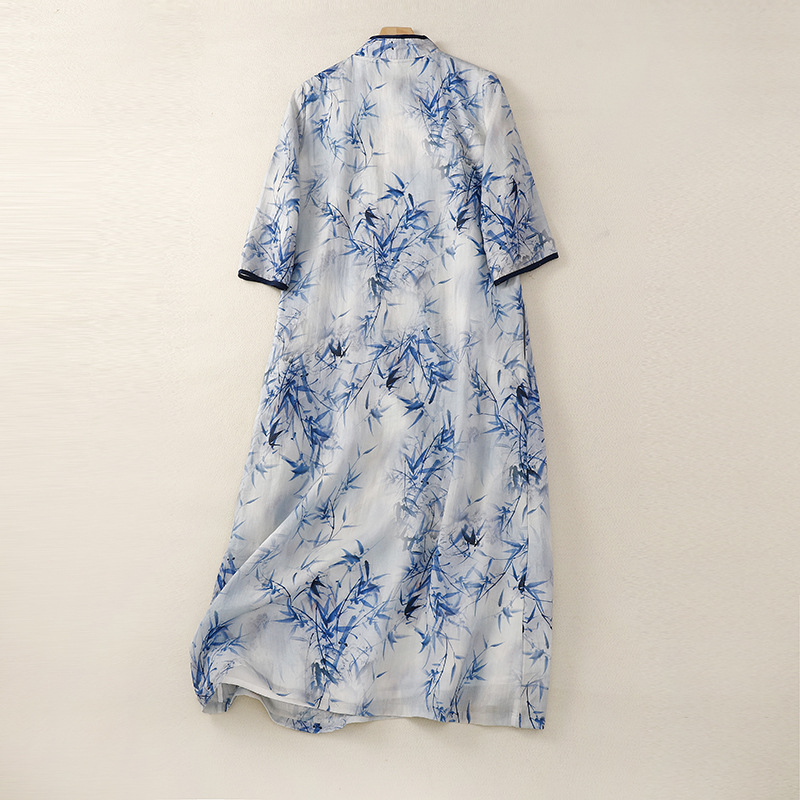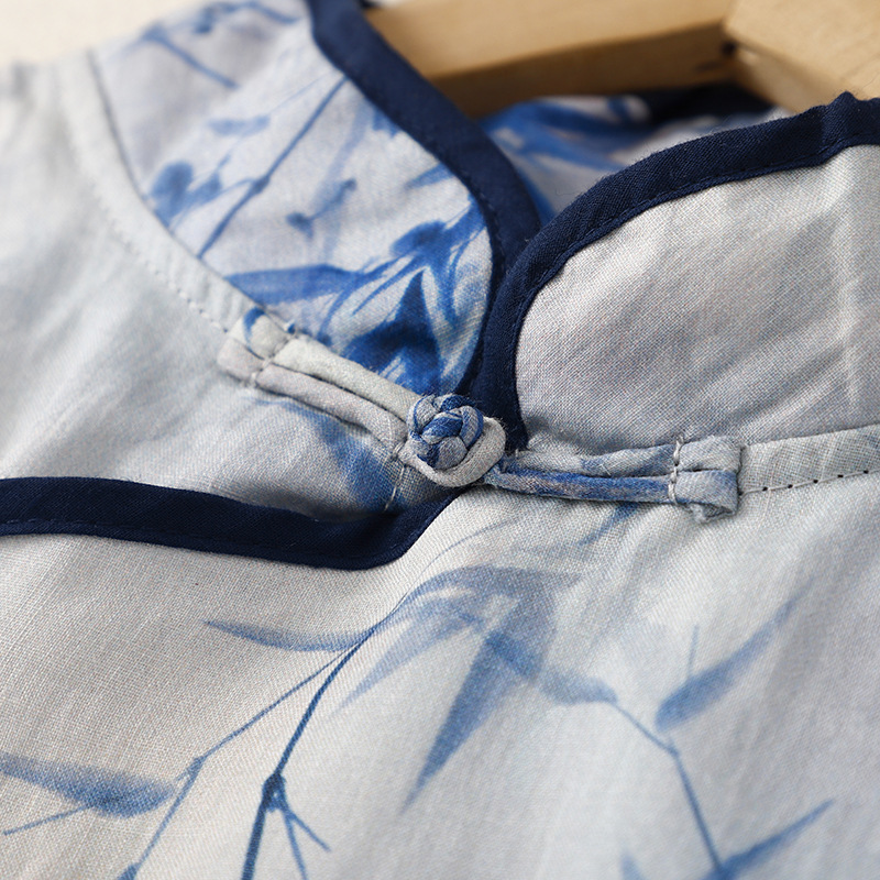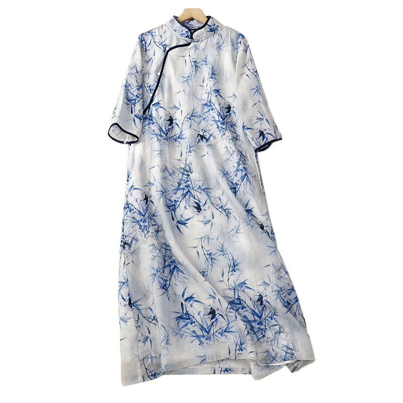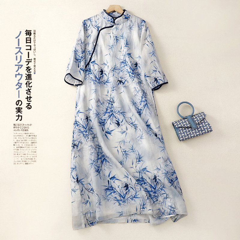 | nameOriginal | Real shot retro Republic of China style ramie printed cheongsam design sense stitching loose meat covering temperament skirt |