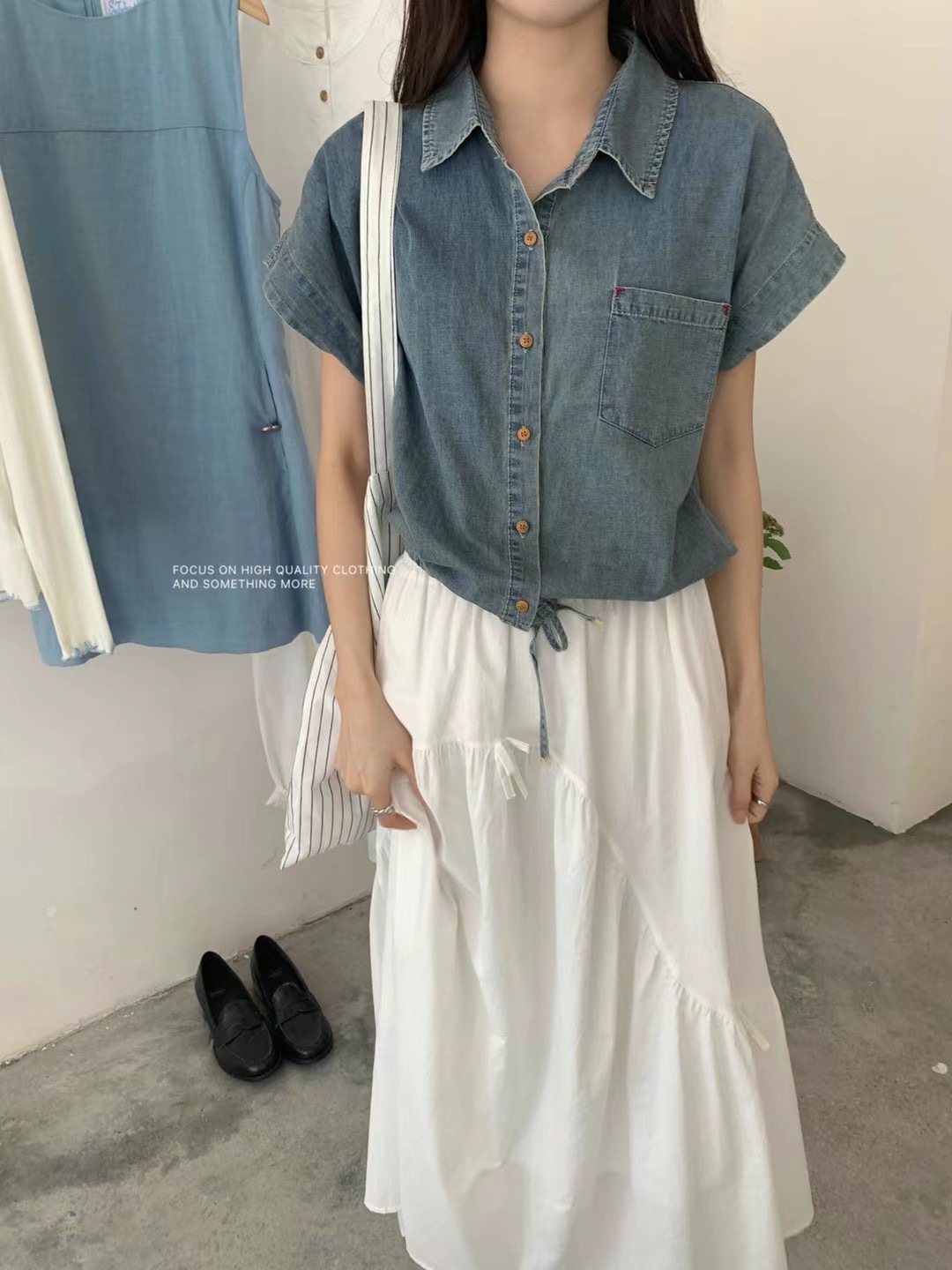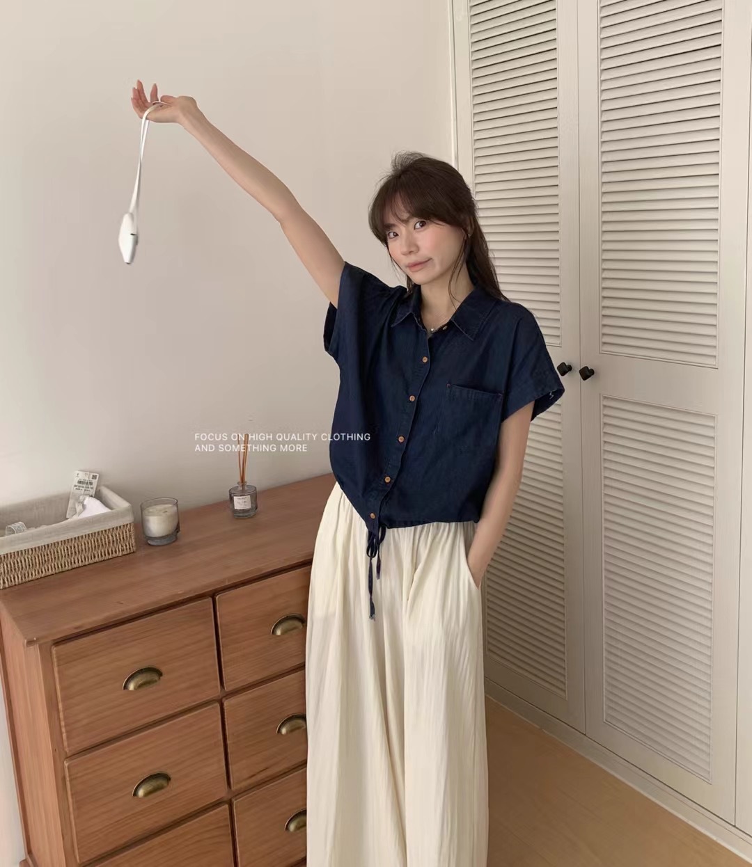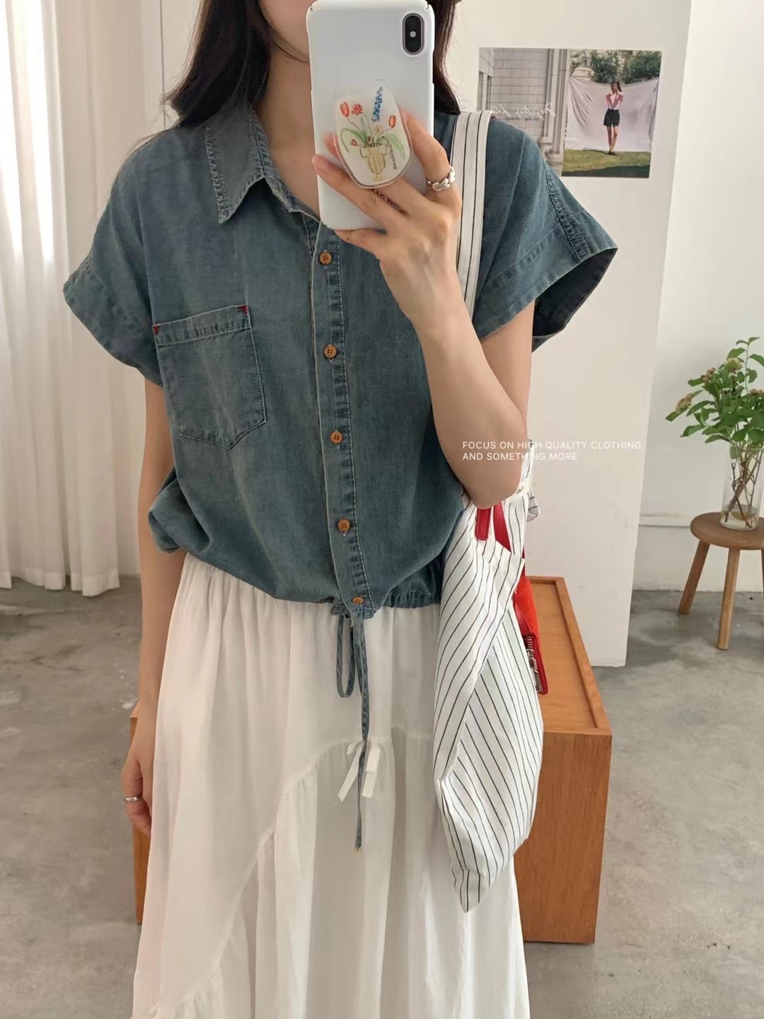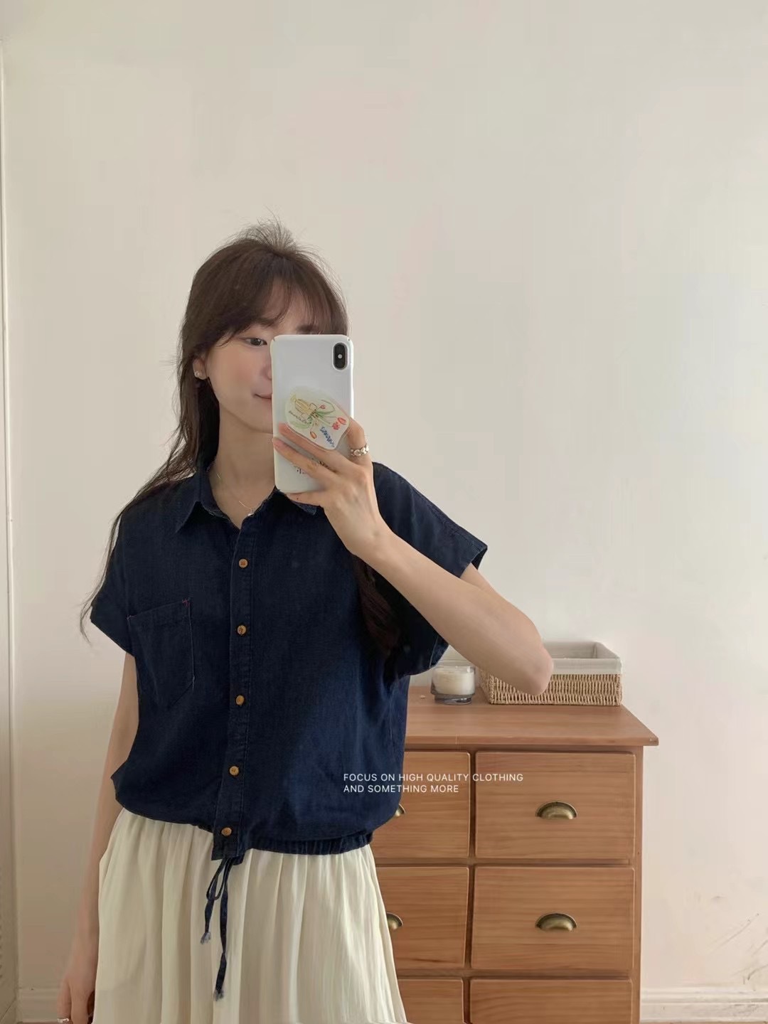 | nameOriginal | Real shot ~ retro temperament soft Denim shirt drawstring |