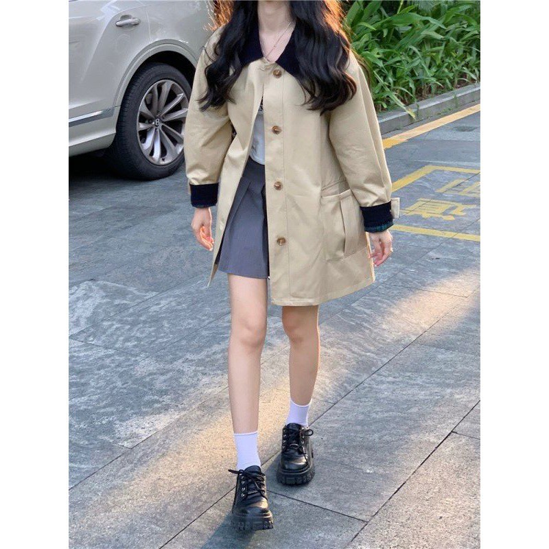 | nameOriginal | Real Shot Short Light Khaki Coat Women's Small Early Autumn Stitching Contrast Color All-match Loose Casual Coat 53427 |