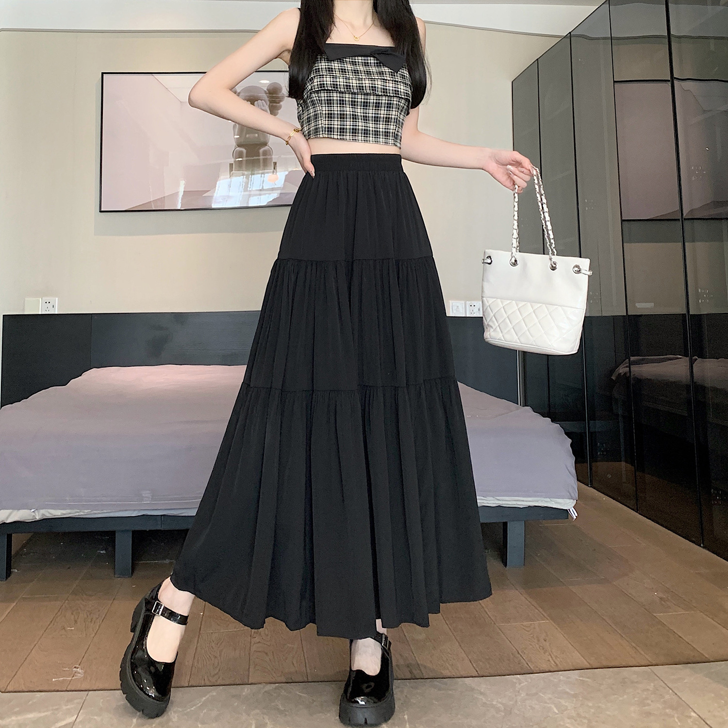 | nameOriginal | Real Shot Solid Color A- line Skirt Large Swing Skirt Women's 2024 Summer All-match High Waist Slimming Skirt Holiday Long Skirt |