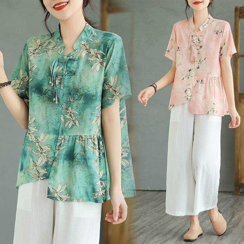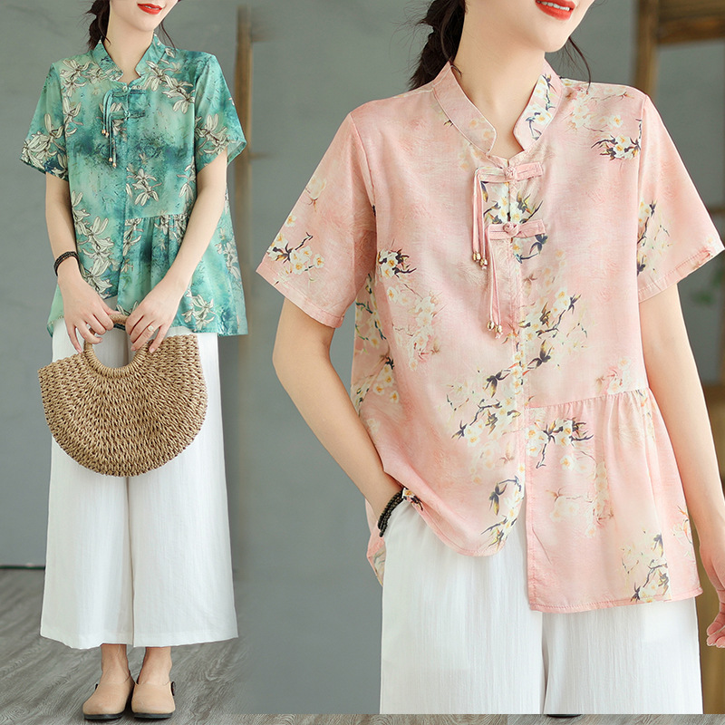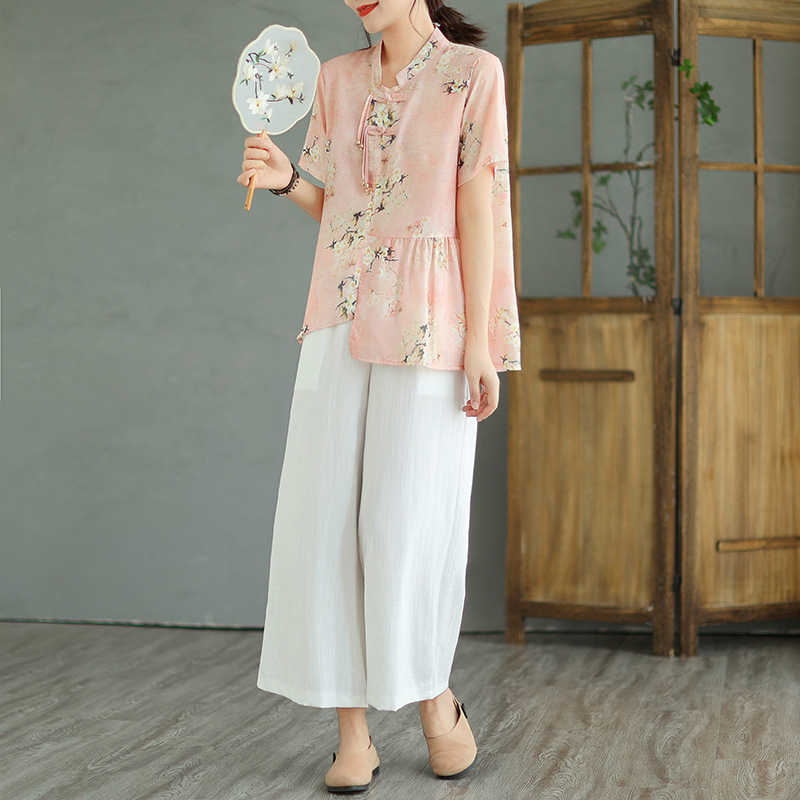 | nameOriginal | Real shot spot 2024 new loose slimming cotton and linen printed jacket wide leg pants western style mother two-piece set |
