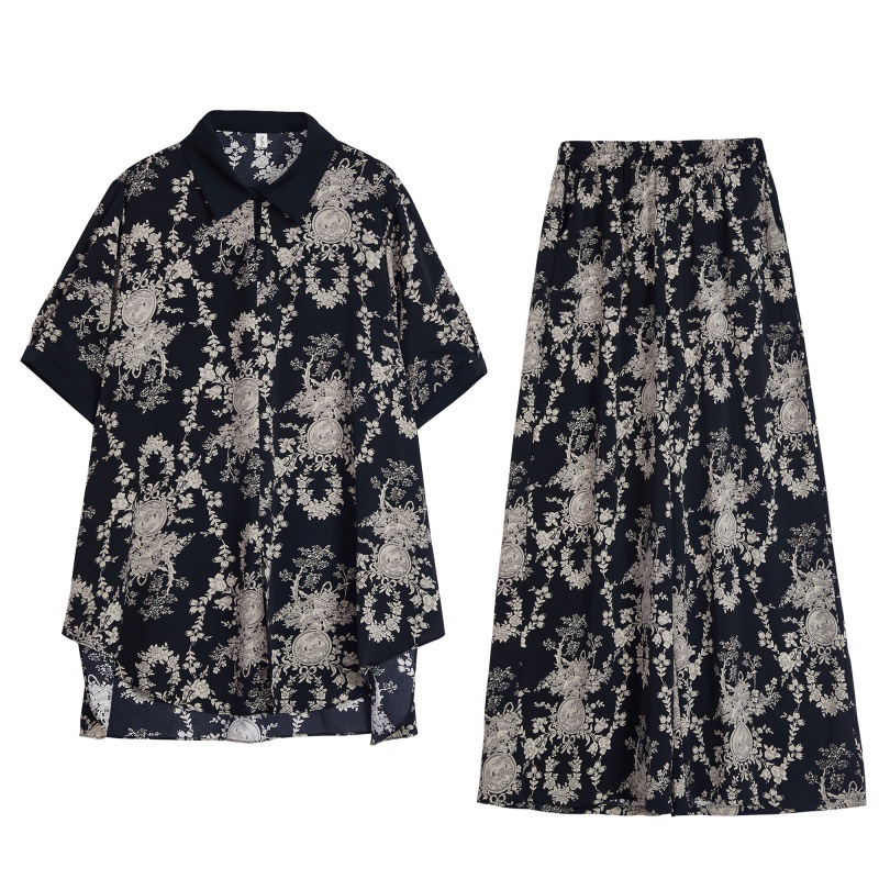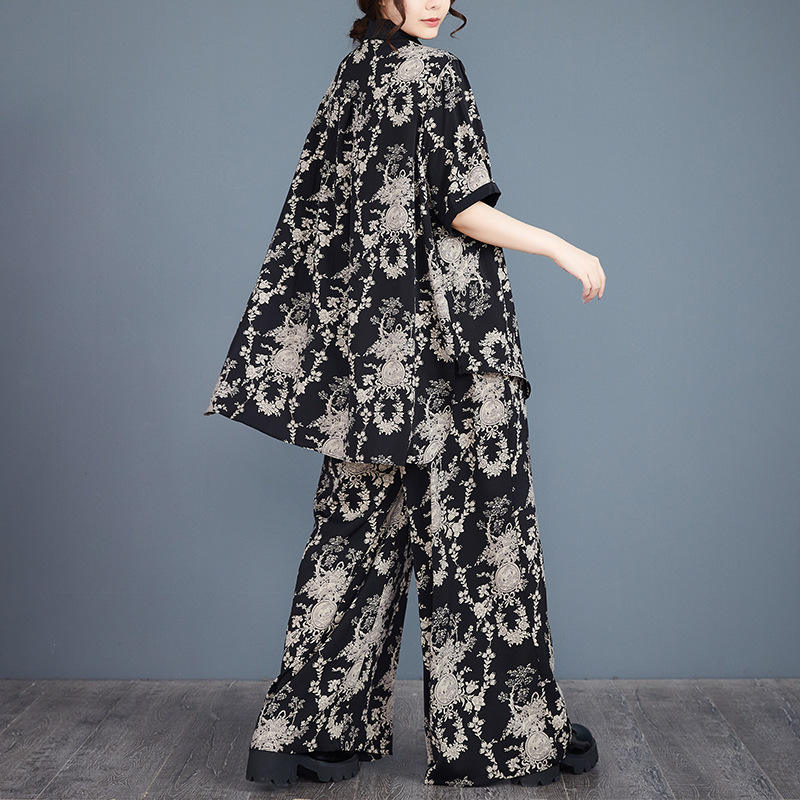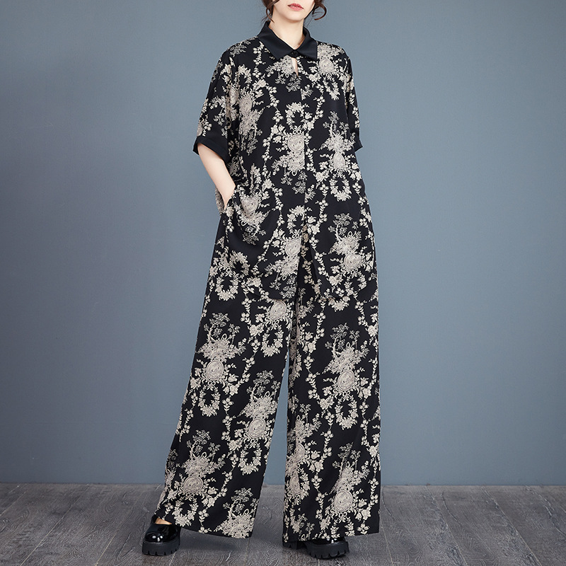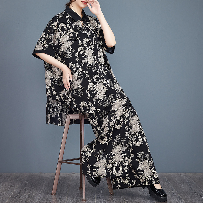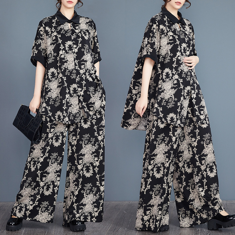 | nameOriginal | Real shot spot 2024 Xia Xin POLO collar contrast printed loose top wide leg trousers two-piece set |