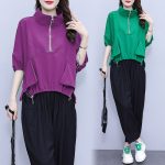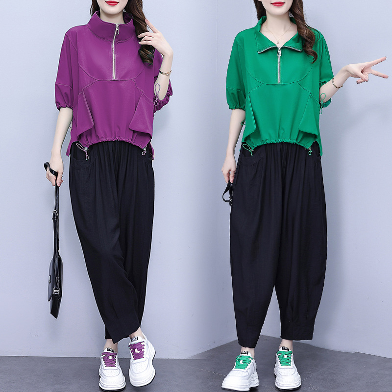 | nameOriginal | Real Shot Spot Large Size Fashionable Loose Belly Covering Drawstring Zipper Pocket Top Harlan Pants Two-piece 2024 Summer |