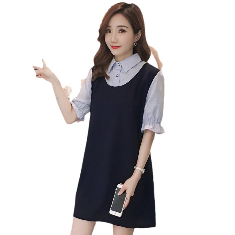 | nameOriginal | Real shot# spot# maternity autumn skirt 2022 summer Korean lapel short sleeve skirt loose long dress |