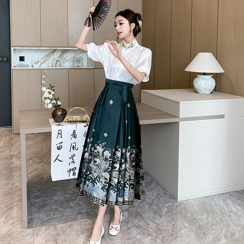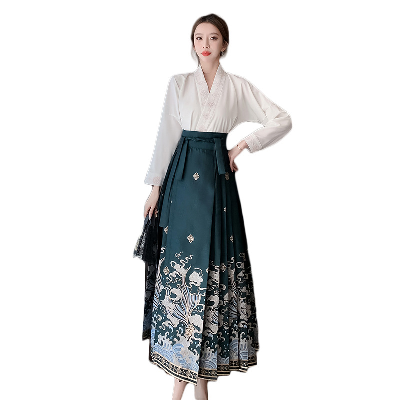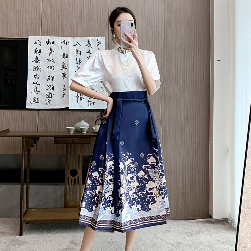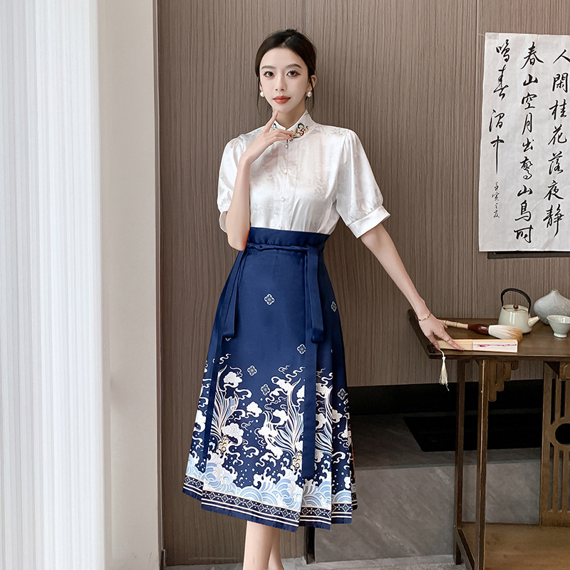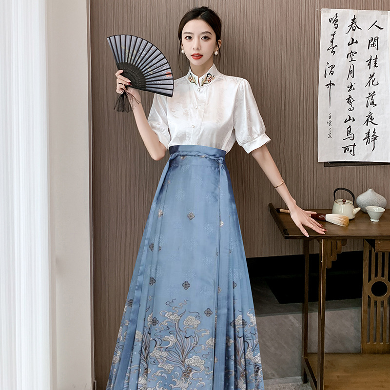 | nameOriginal | Real Shot Spot New Chinese Style National Style Blue Daily Horse-faced Skirt Ming-made Hanfu Women's Embroidered Shirt Two-piece Suit |