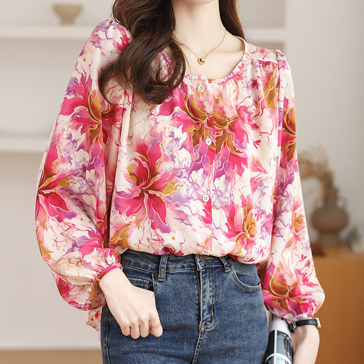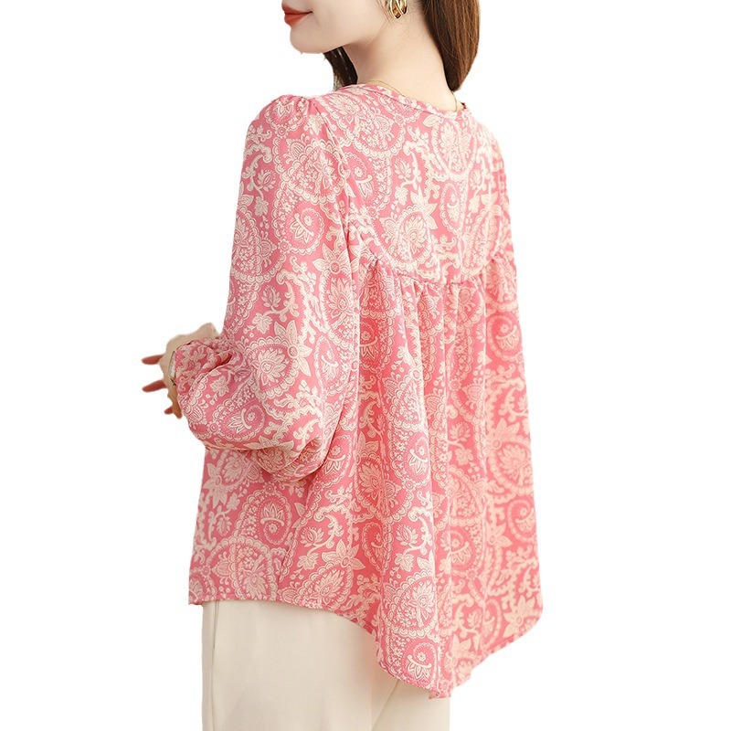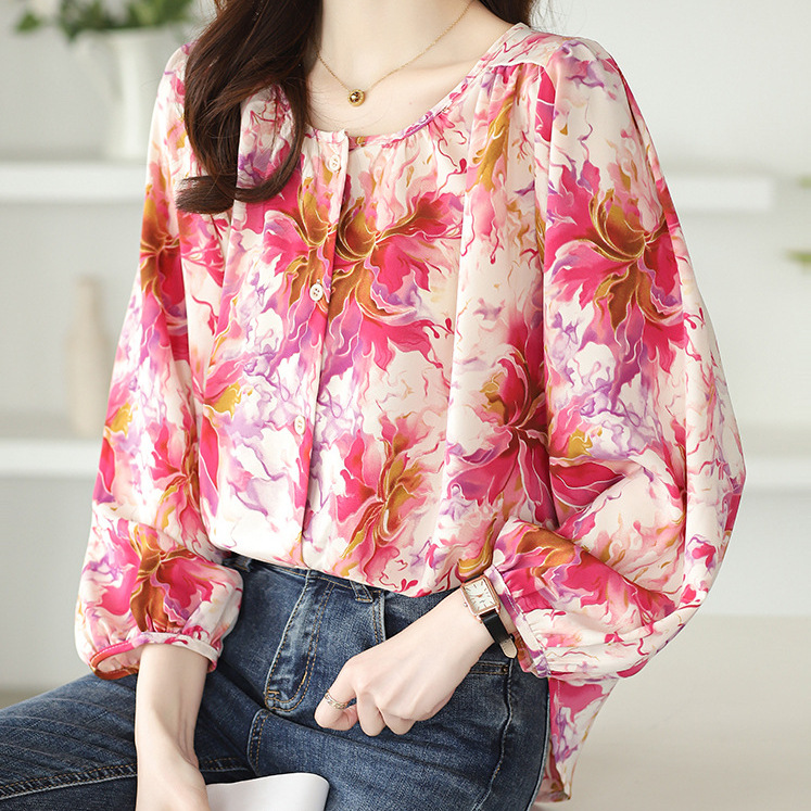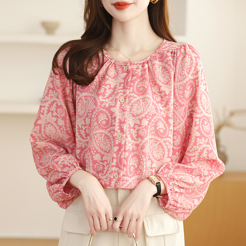 | nameOriginal | Real shot spot pink floral lantern sleeve shirt women's 2024 new gentle Korean sweet long sleeve top |