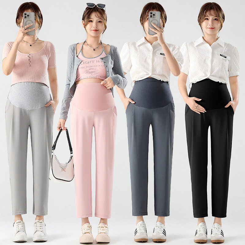 | nameOriginal | Real shot spot pregnant women summer new ice silk suit pants wide leg pants drape relaxed casual harem pants cropped pants |