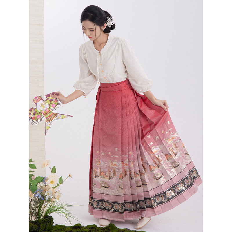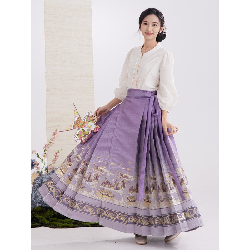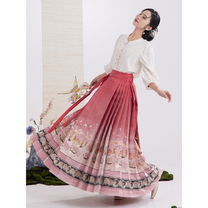 | nameOriginal | Real Shot Spot Spring and Summer New Chinese Style Collar Stitching Top Weaved Gold Makeup Flower Handmade Pleated Horse Face Skirt |