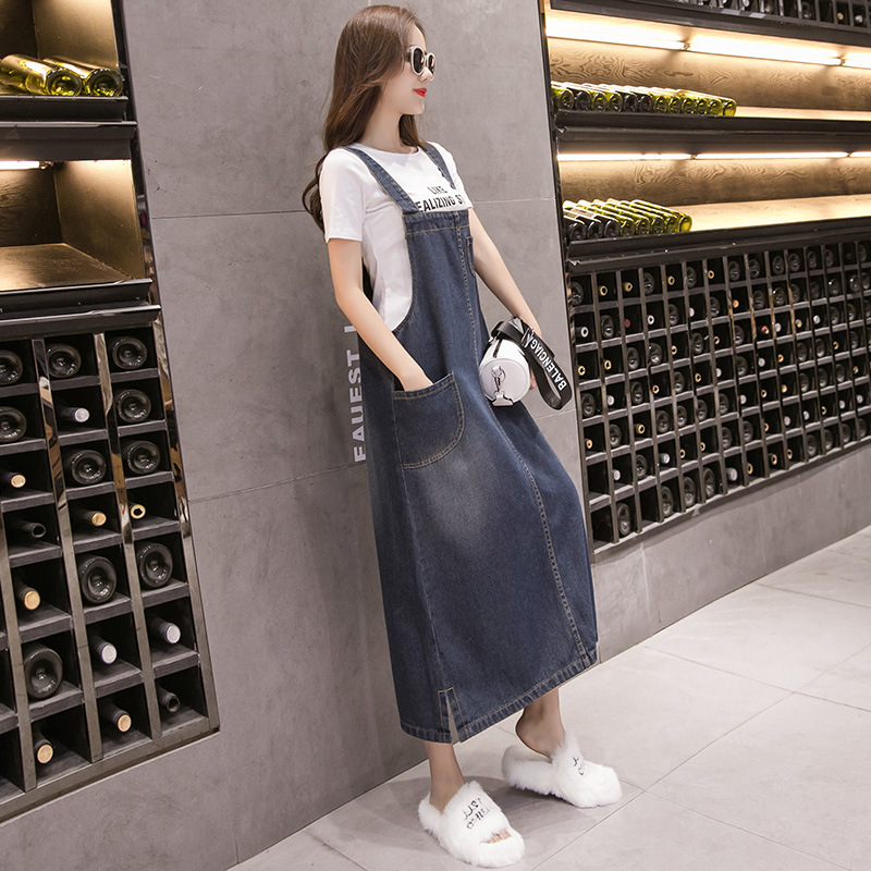Real Shot Spring and Summer Loose Casual All-match Denim Strap Dress Long Thin dress Women
