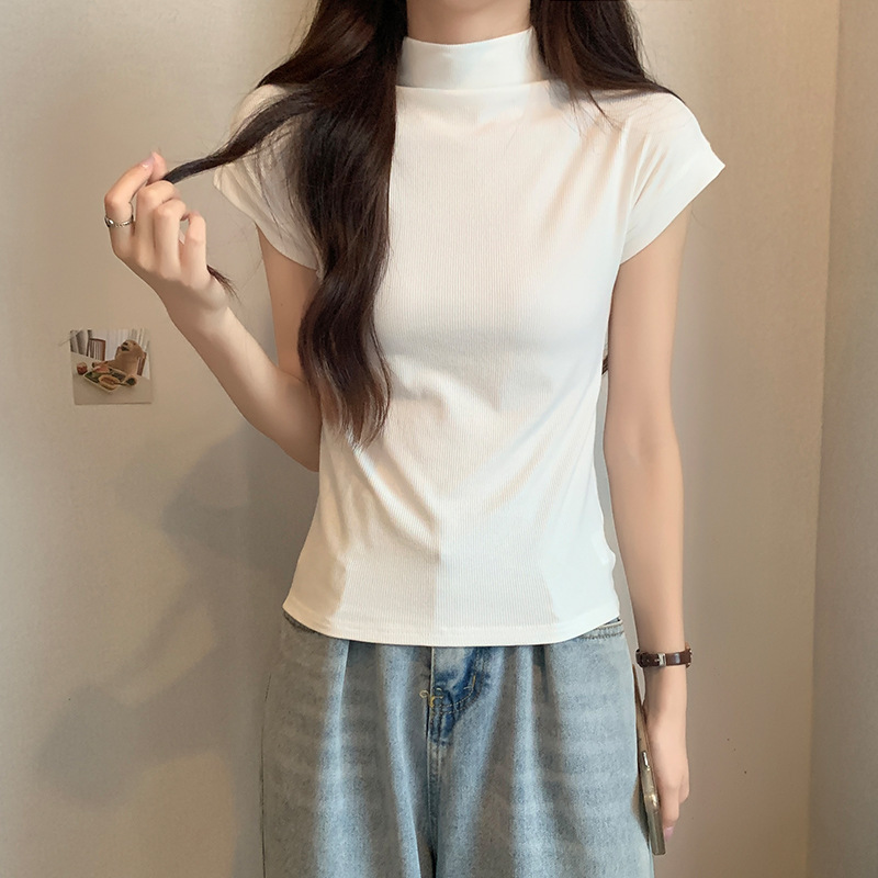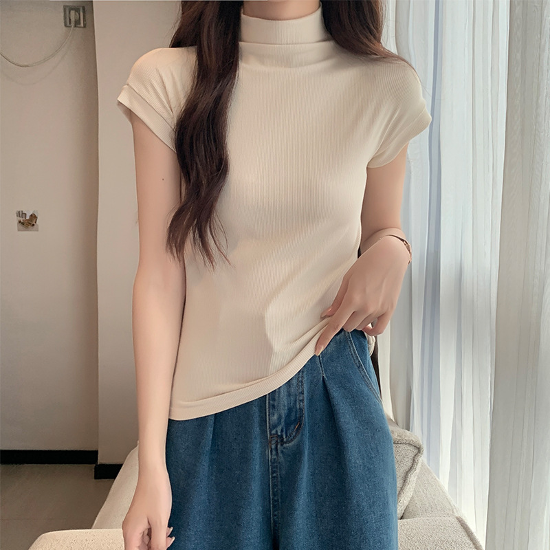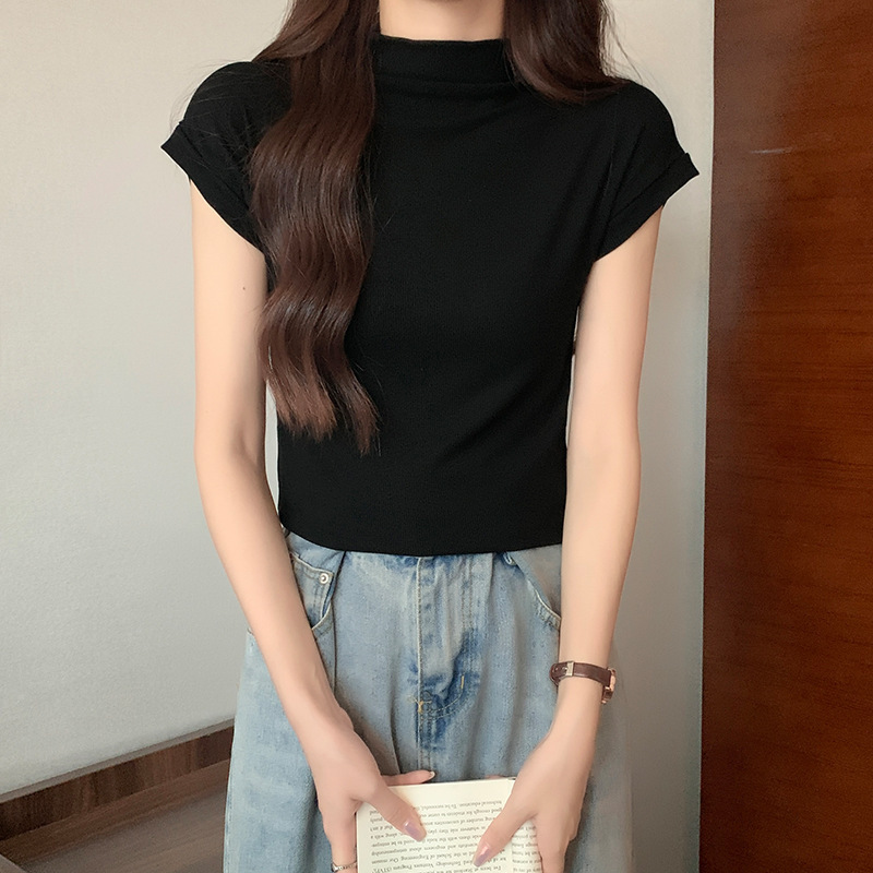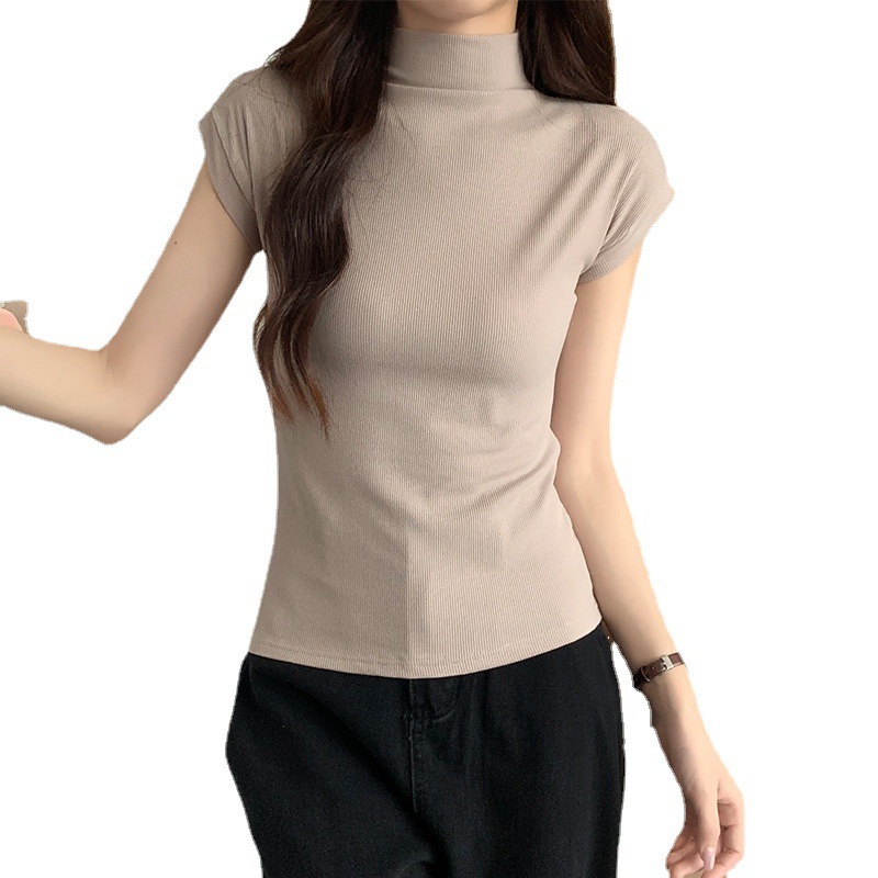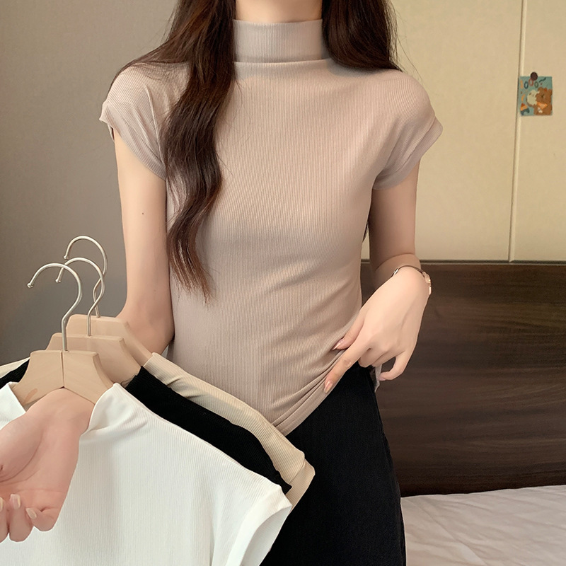 | nameOriginal | Real Shot Spring and Summer Solid Color Tight Base Shirt Women's Fashionable Western-style Half-high Collar Short-sleeved Shirt All-match Korean Top |