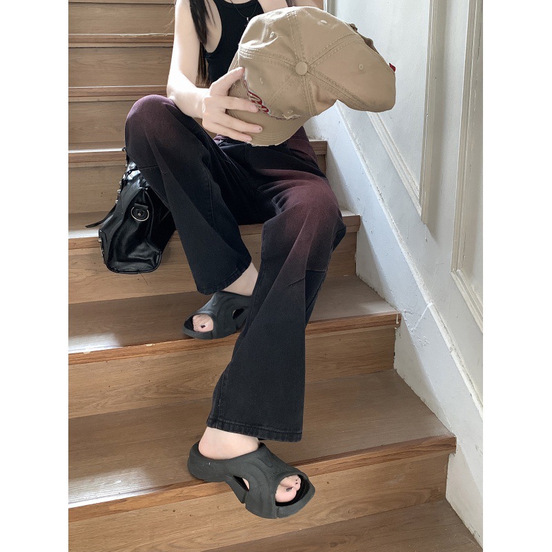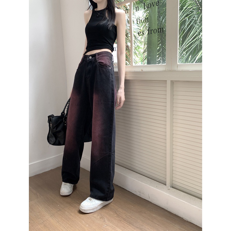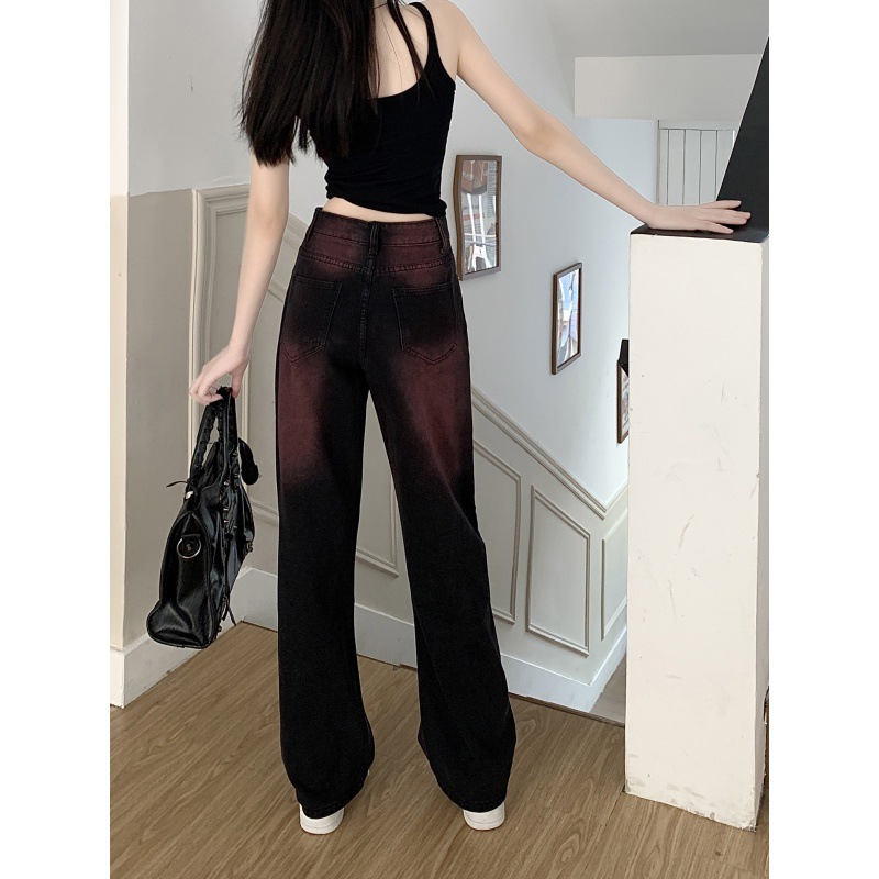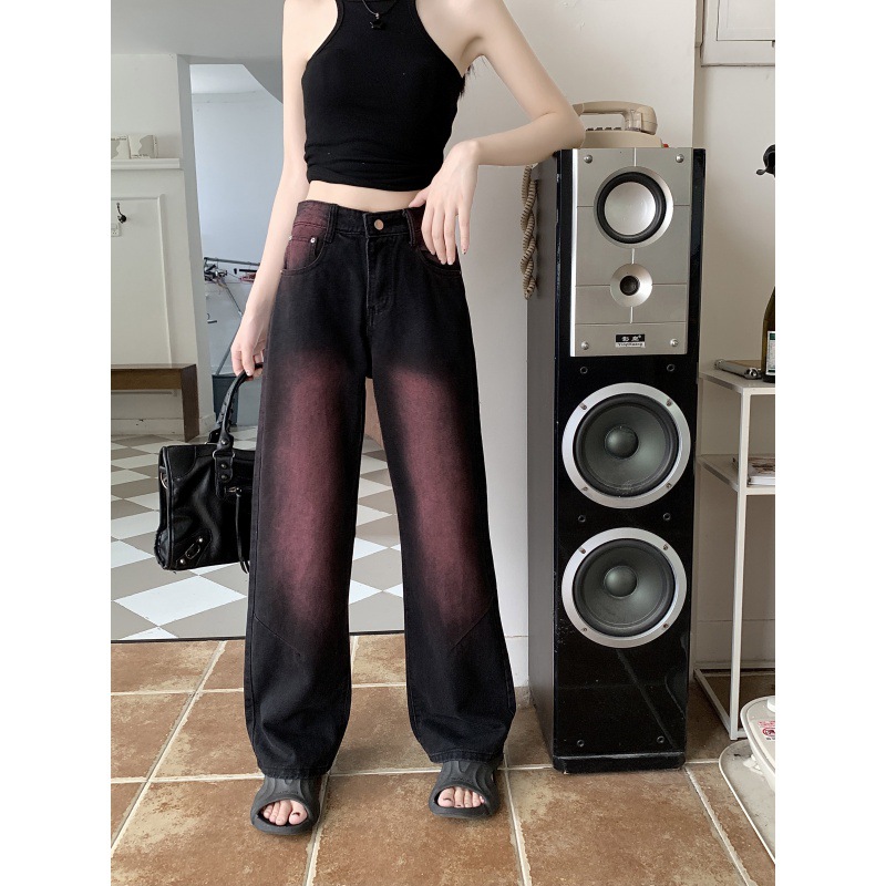 Real shot! Summer Black Pink Graffiti Washable Jeans Women’s Retro Design Sense Straight Leg Wide-leg Pants