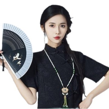 | nameOriginal | Real Shot Summer New Chinese Style Vertical Collar Buckle Black Top National Style Printing Daily Work Wear Horse Face Skirt Skirt |