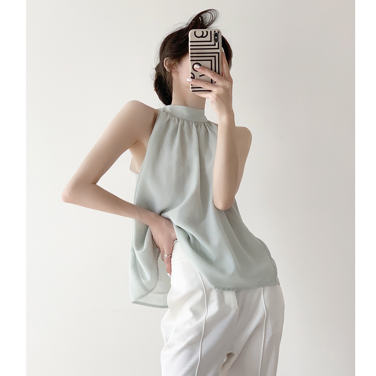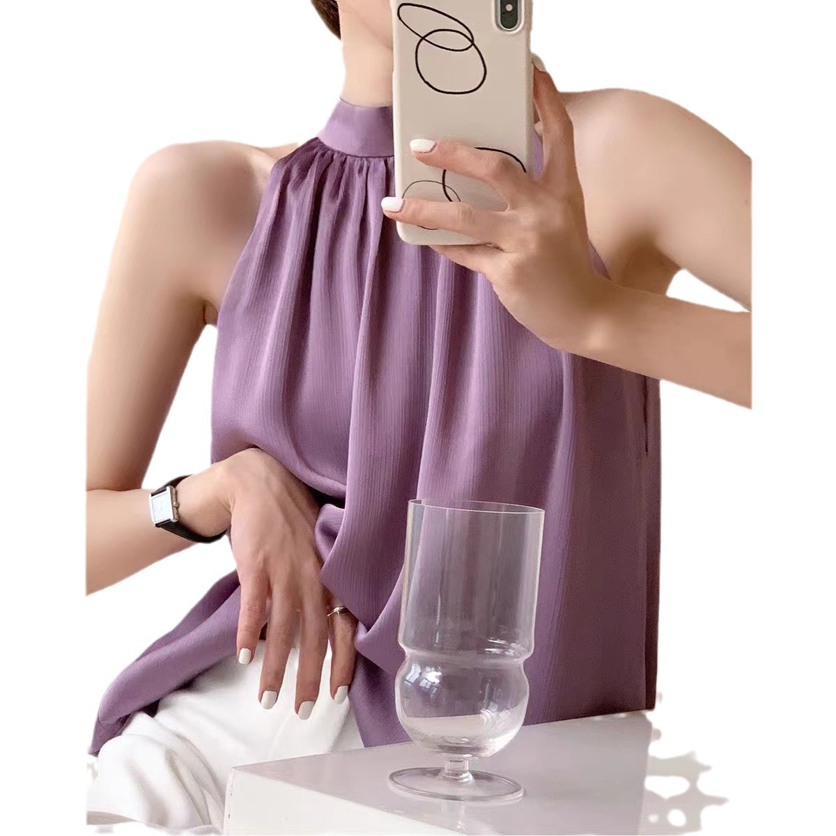 | nameOriginal | Real Shot Summer New Design Sense Sleeveless Shirt Women's Niche Outfit Beauty Shoulder French Neck Vest Women's Top |