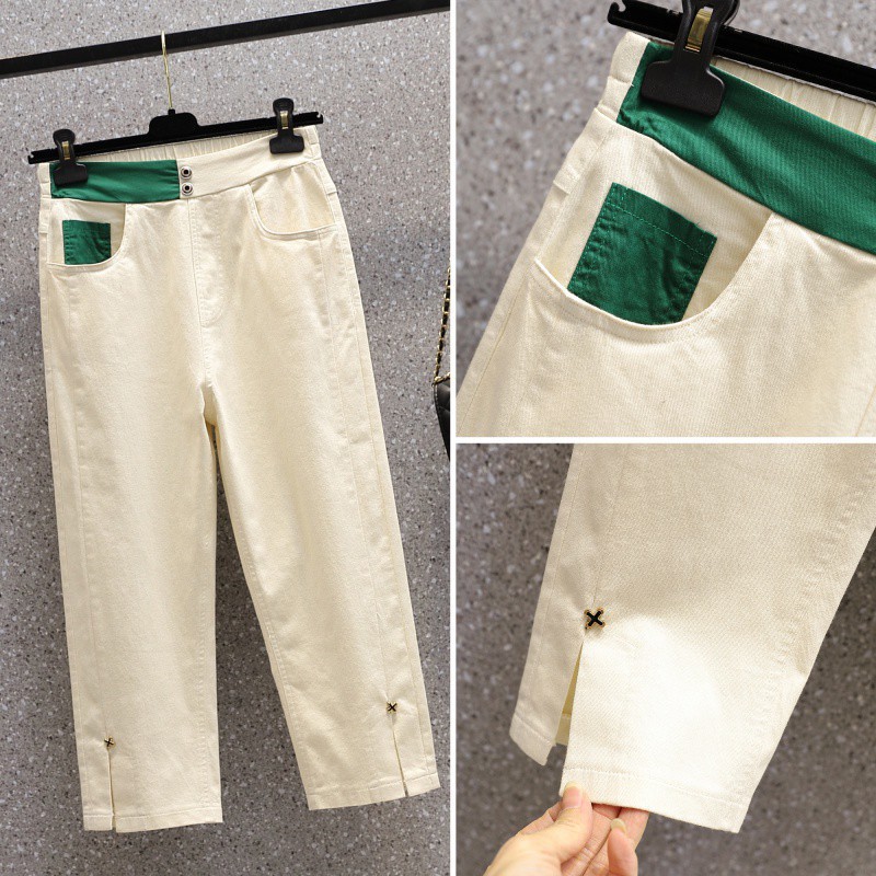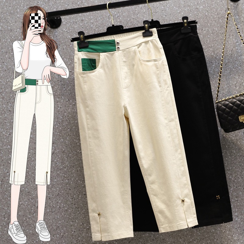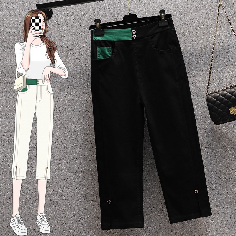 | nameOriginal | Real shot summer new European version plus size straight tube stretch cropped casual women's pants fat thin high waist cropped cropped trousers |