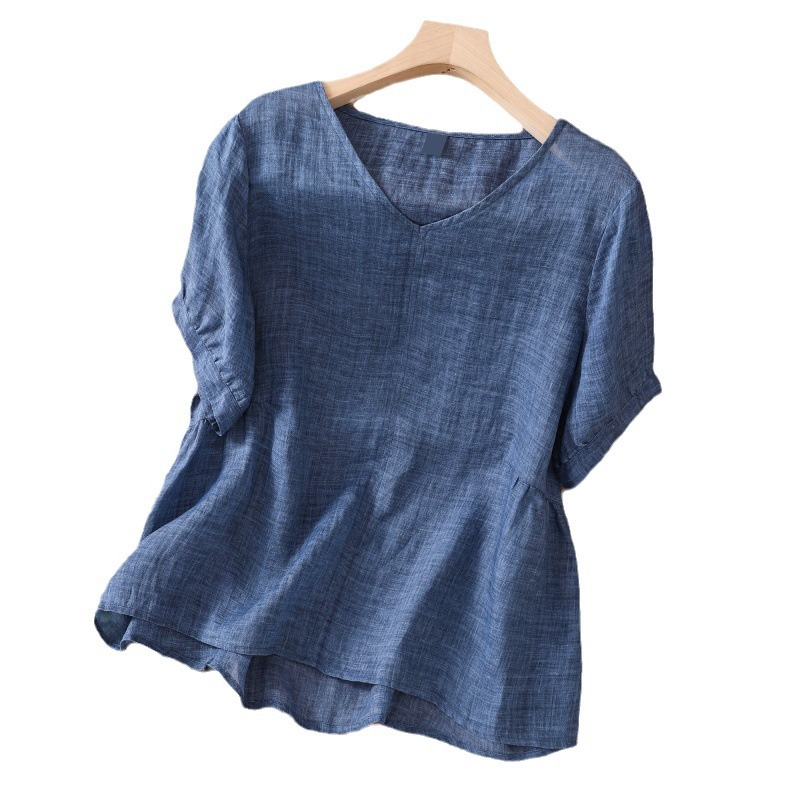 | nameOriginal | Real Shot Summer New Fashionable T-shirt Women's Cotton and Linen Short Sleeve V-neck Linen plus size Middle-aged Mother Top Women |