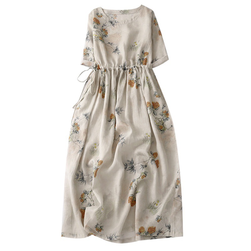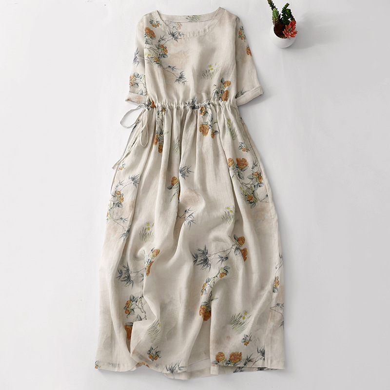 | nameOriginal | Real Shot Summer New Ramie Printed dress Vacation Travel Waist Slimming Over-the-knee Long Dress Fairy |