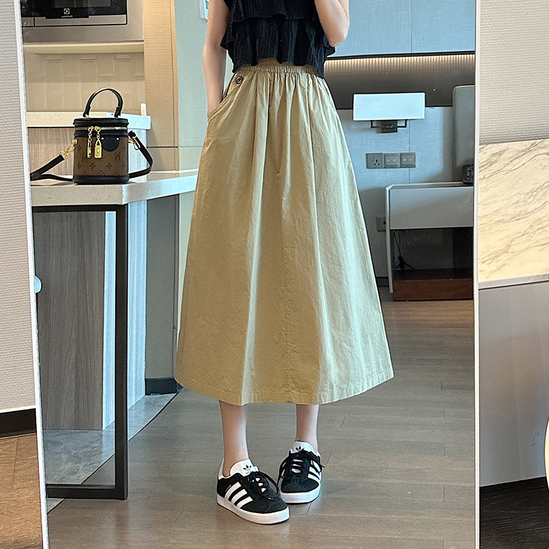 | nameOriginal | Real Shot Summer Skirt plus size Workwear Skirt Design Elastic Waist Casual Long Skirt |