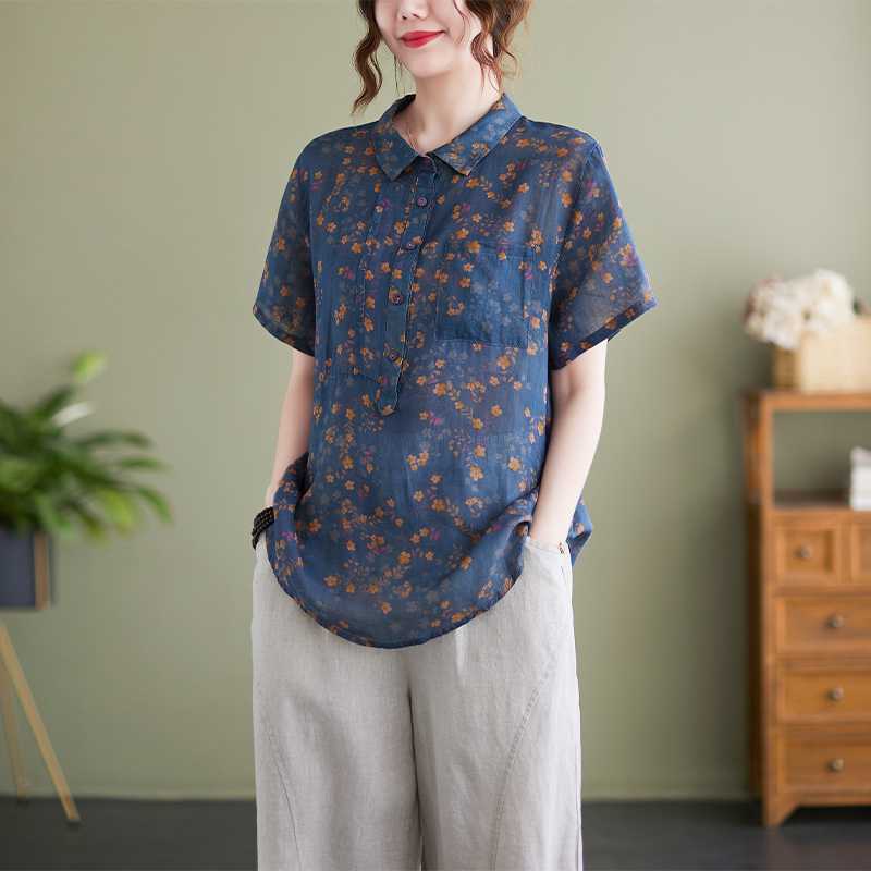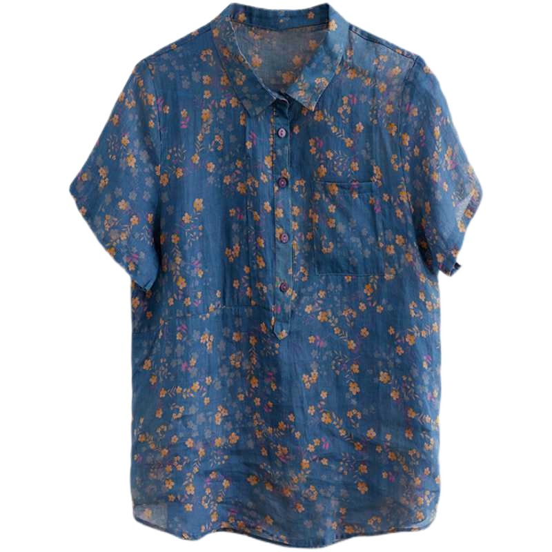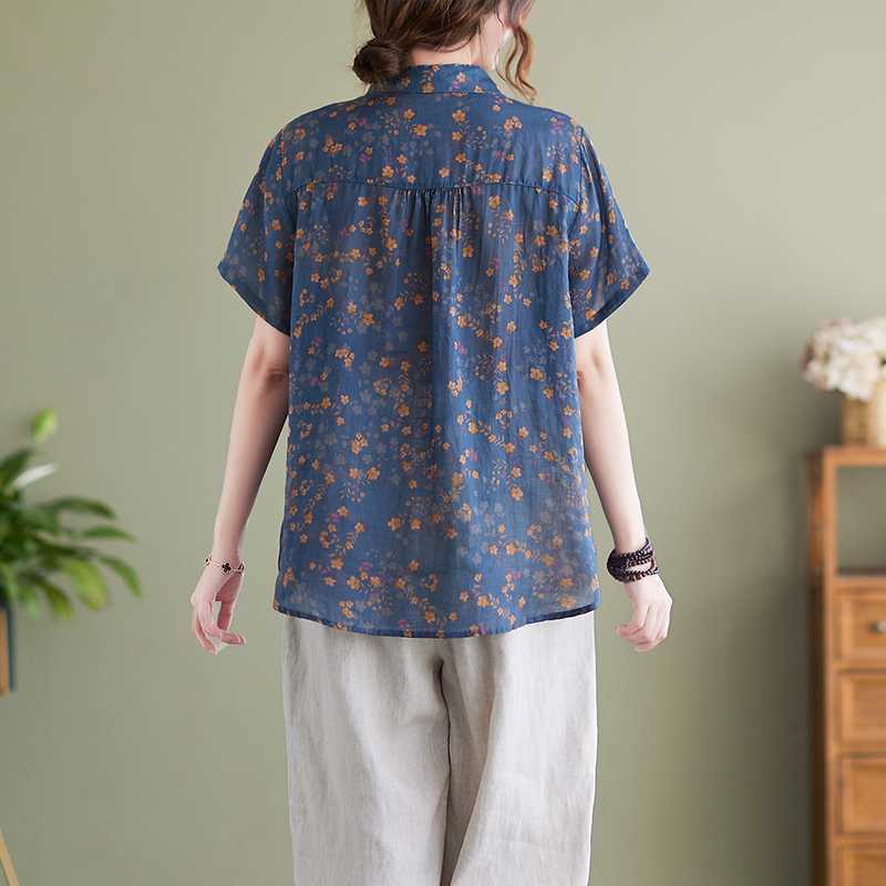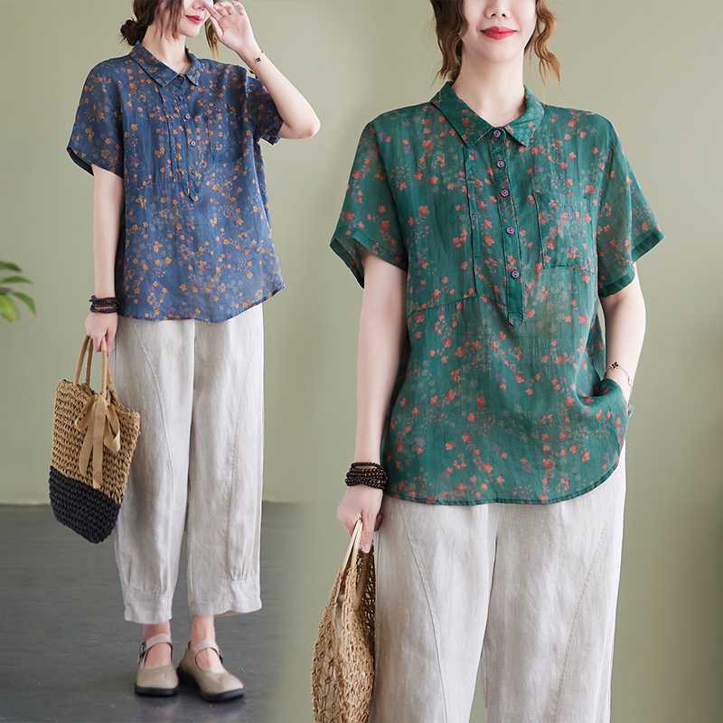 | nameOriginal | Real Shot Summer Slim Vertical Collar Cotton and Linen Small Floral Shirt Short Sleeve Lar Elegant Small Ramie Art Top |