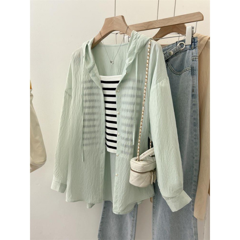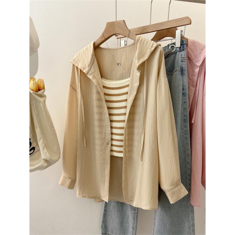 Real Shot Sun Protection Clothing Women’s Hooded Thin Coat Small 2024 Summer Loose Casual All-match Top Cardigan