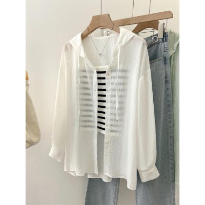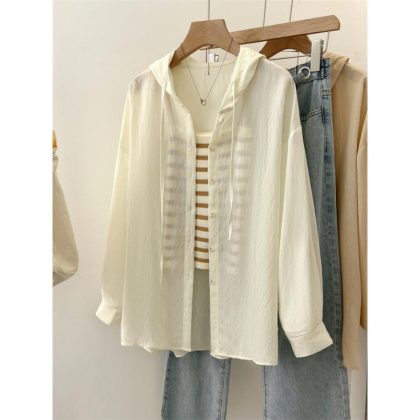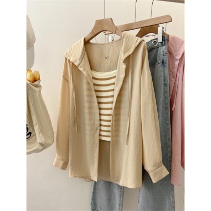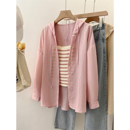 Real Shot Sun Protection Clothing Women’s Hooded Thin Coat Small 2024 Summer Loose Casual All-match Top Cardigan