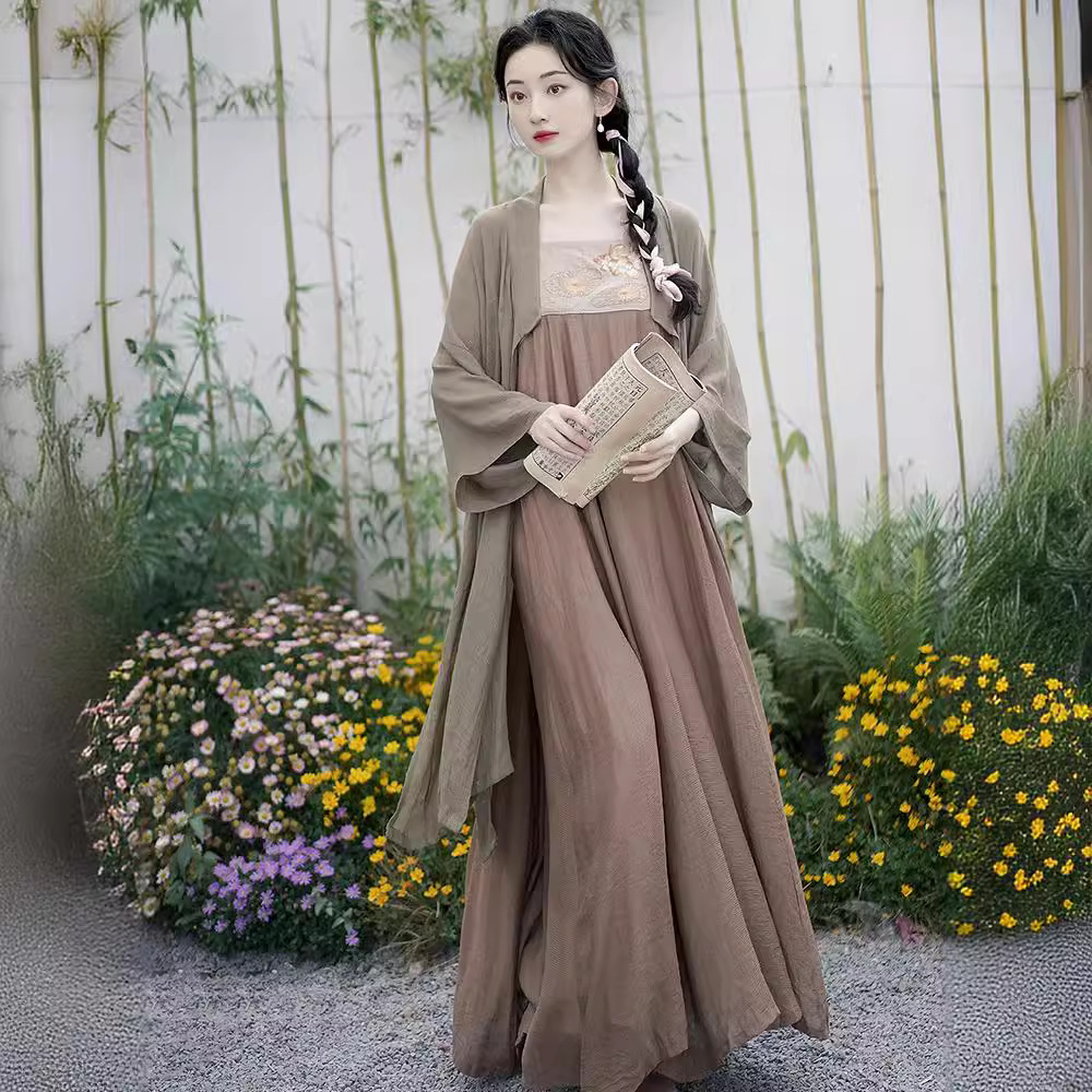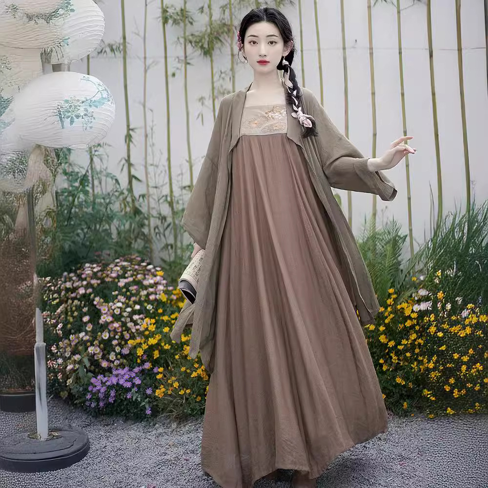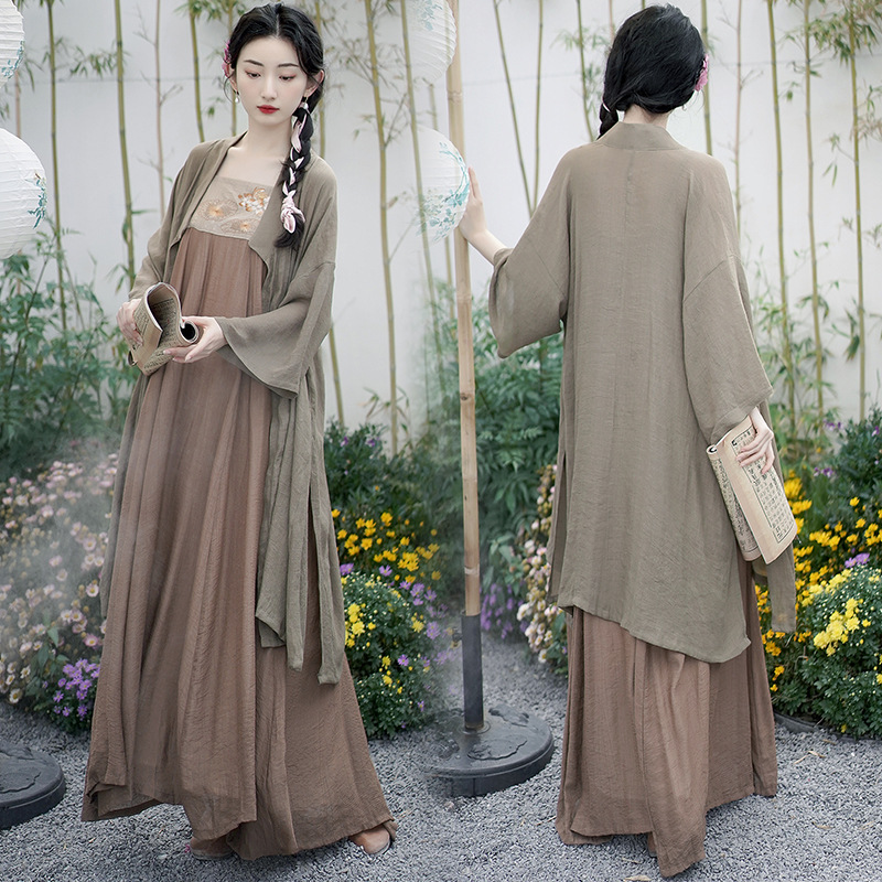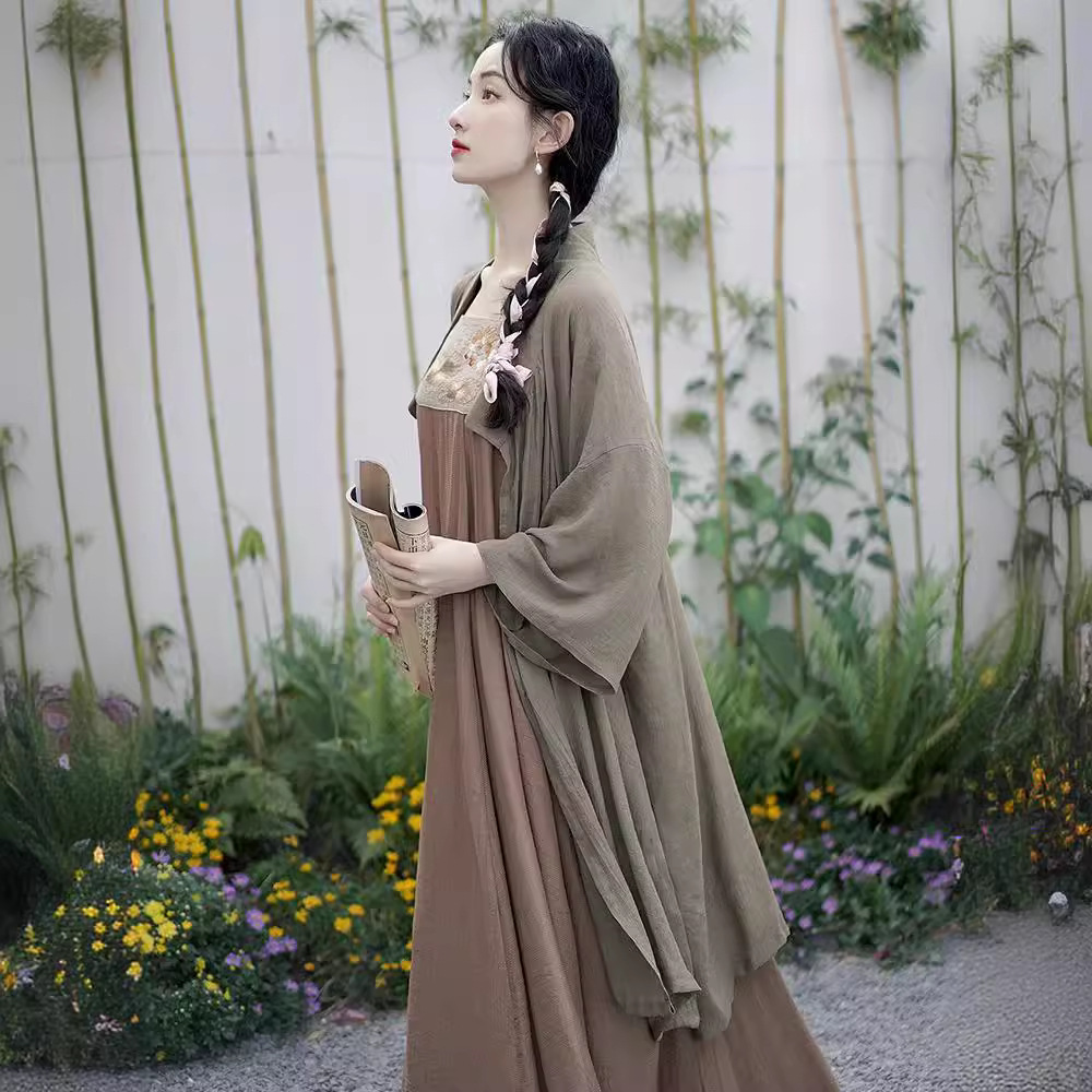 Real Shot Tang Style Guofeng Han Element Sling dress Zen Style Lazy Style Outer Shirt Improved Hanfu suit New Chinese Style