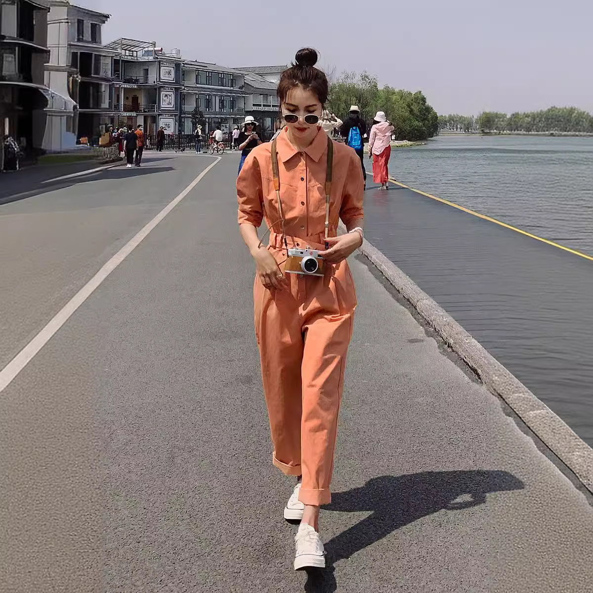 | nameOriginal | Real-shot Temperament Age-reducing Orange Work Jumpsuit Women's Spring and Summer New Style Small Jumpsuit Pants Set |